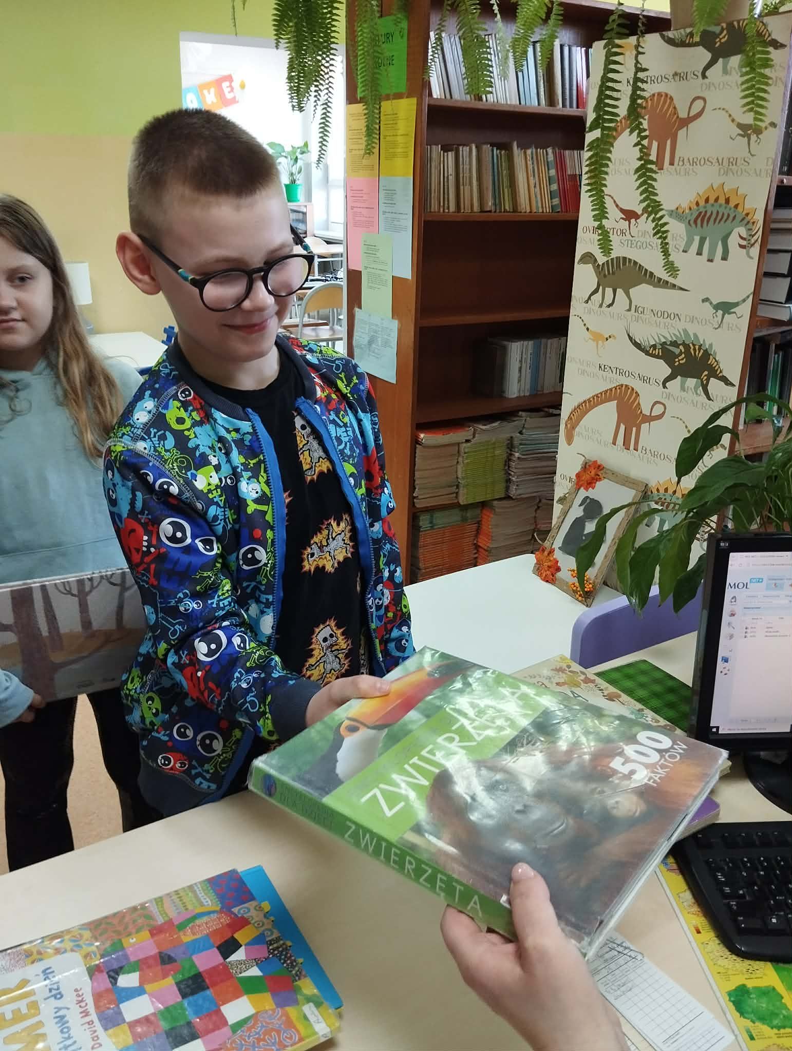 Od II półrocza roku szkolnego 2025/2026 uczniowie klasy 3a biorą udział w cyklu zajęć poświęconych rozwijaniu czytelnictwa i kształtowaniu nawyku sięgania po książkę. Jednym z elementów tych spotkań są tzw. „lekcje z książką”, podczas których dzieci mają możliwość samodzielnego wyboru lektury, a następnie oddają się cichemu czytaniu. Zajęcia odbywają się w spokojnej atmosferze, sprzyjającej skupieniu i wyciszeniu. Każdy uczeń wybiera książkę zgodnie ze swoimi zainteresowaniami i poziomem czytelniczym, co sprawia, że czytanie staje się przyjemnością, a nie obowiązkiem. Regularny kontakt z literaturą rozwija wyobraźnię, wzbogaca słownictwo oraz kształtuje umiejętność koncentracji. Celem prowadzonych zajęć jest nie tylko doskonalenie techniki czytania, ale przede wszystkim budowanie pozytywnego stosunku do książek. Uczniowie uczą się samodzielności w wyborze lektury, rozwijają swoje zainteresowania oraz odkrywają radość płynącą z obcowania z literaturą. Istotnym elementem realizacji tego cyklu jest współpraca z panią bibliotekarką, która wspiera uczniów w wyborze odpowiednich książek, doradza oraz zachęca do sięgania po nowe tytuły. Dzięki tej współpracy dzieci mają dostęp do różnorodnych pozycji i uczą się korzystania z zasobów biblioteki.