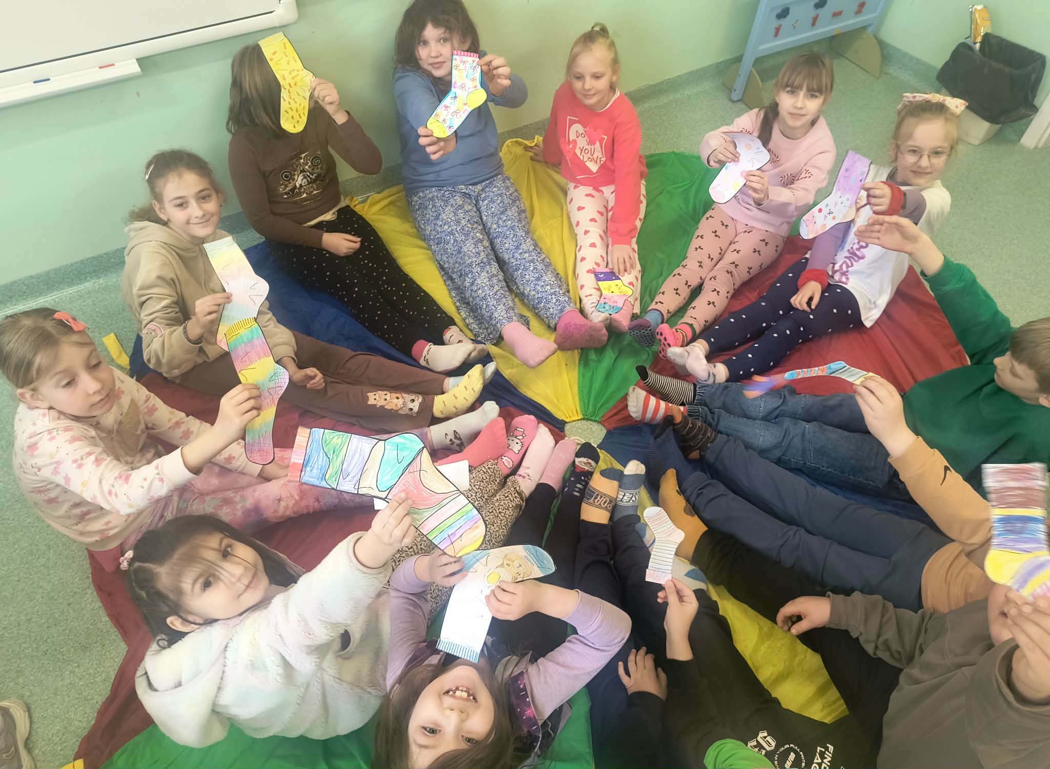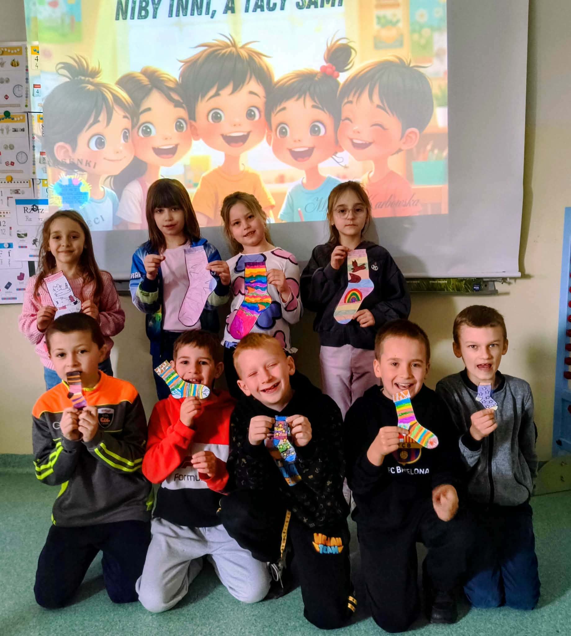 W ramach obchodów Światowego Dnia Zespołu Downa w naszej szkole zorganizowano Dzień Kolorowej Skarpetki. Uczniowie klas najmłodszych uczestniczyli w zajęciach edukacyjnych, podczas których rozwijali postawy szacunku, życzliwości, empatii oraz akceptacji wobec innych osób. Podczas lekcji dzieci obejrzały film edukacyjny wyjaśniający, czym jest zespół Downa oraz jakie są jego przyczyny. Następnie uczniowie wykonali własne, kolorowe skarpetki - symbol różnorodności i wyjątkowości każdego człowieka. W piątek, 20 marca, cała społeczność szkolna włączyła się w obchody, zakładając kolorowe, niepasujące skarpetki. Był to wyraz solidarności oraz podkreślenie, że każdy z nas jest inny, a jednocześnie równie ważny i wyjątkowy.
