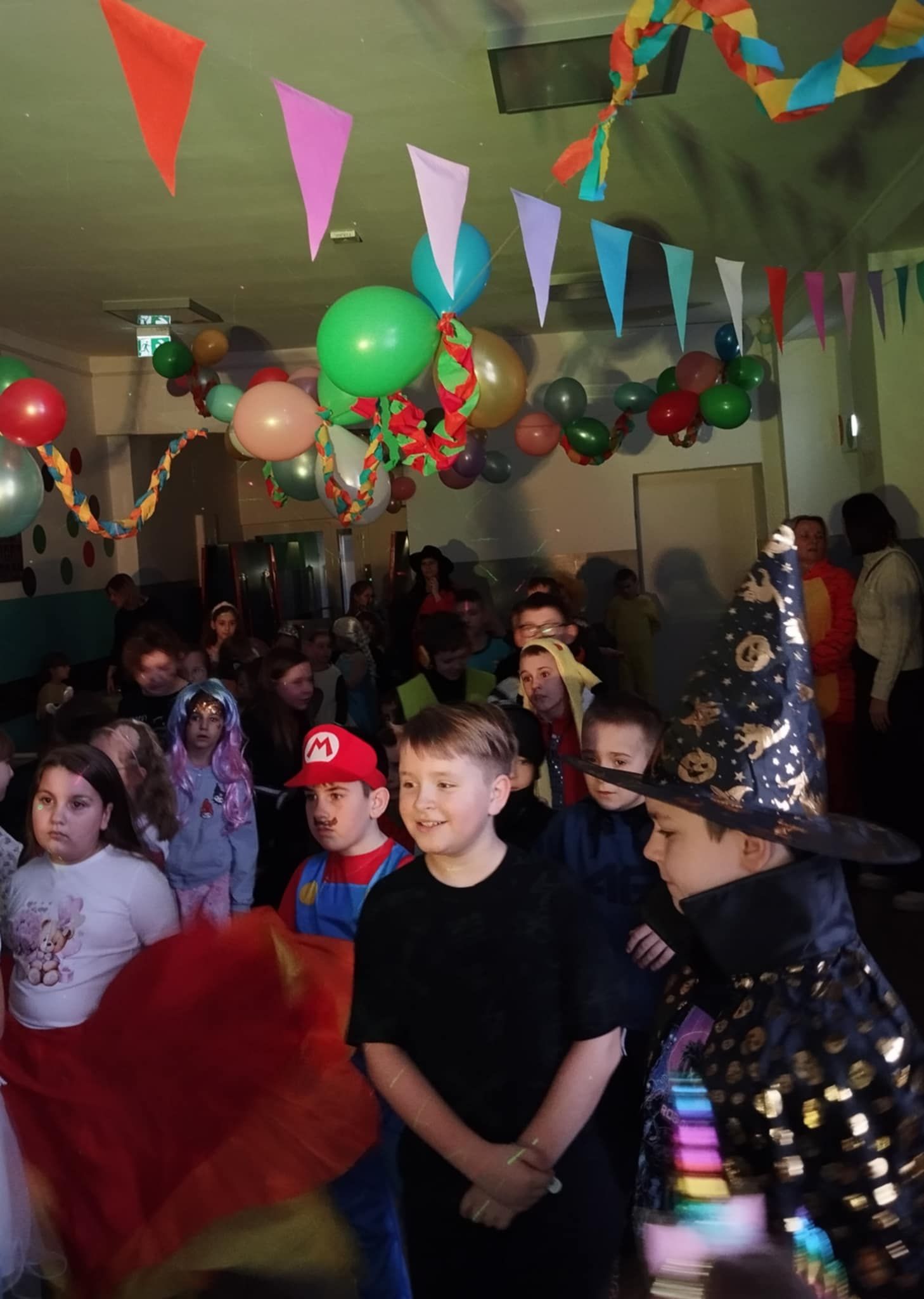 28 stycznia 2026 r. w naszej szkole odbył się niezapomniany Bajkowy Bal Karnawałowy, w którym uczestniczyli uczniowie klas I-III oraz dzieci z oddziałów przedszkolnych. Hol w pobliżu przedszkola zamienił się w prawdziwą krainę fantazji. Pojawiły się księżniczki, superbohaterowie, wróżki, piraci oraz wiele innych barwnych postaci prosto z bajek. Podczas balu dzieci bawiły się przy rytmach znanych i lubianych piosenek, uczestniczyły w zabawach integracyjnych oraz konkursach tanecznych. Wspólne gry i animacje wywoływały mnóstwo śmiechu, radości i pozytywnej energii. Zabawę prowadzili animatorzy, którzy poprowadzili liczne tańce, zabawy oraz konkursy, angażując wszystkie dzieci do wspólnej aktywności.