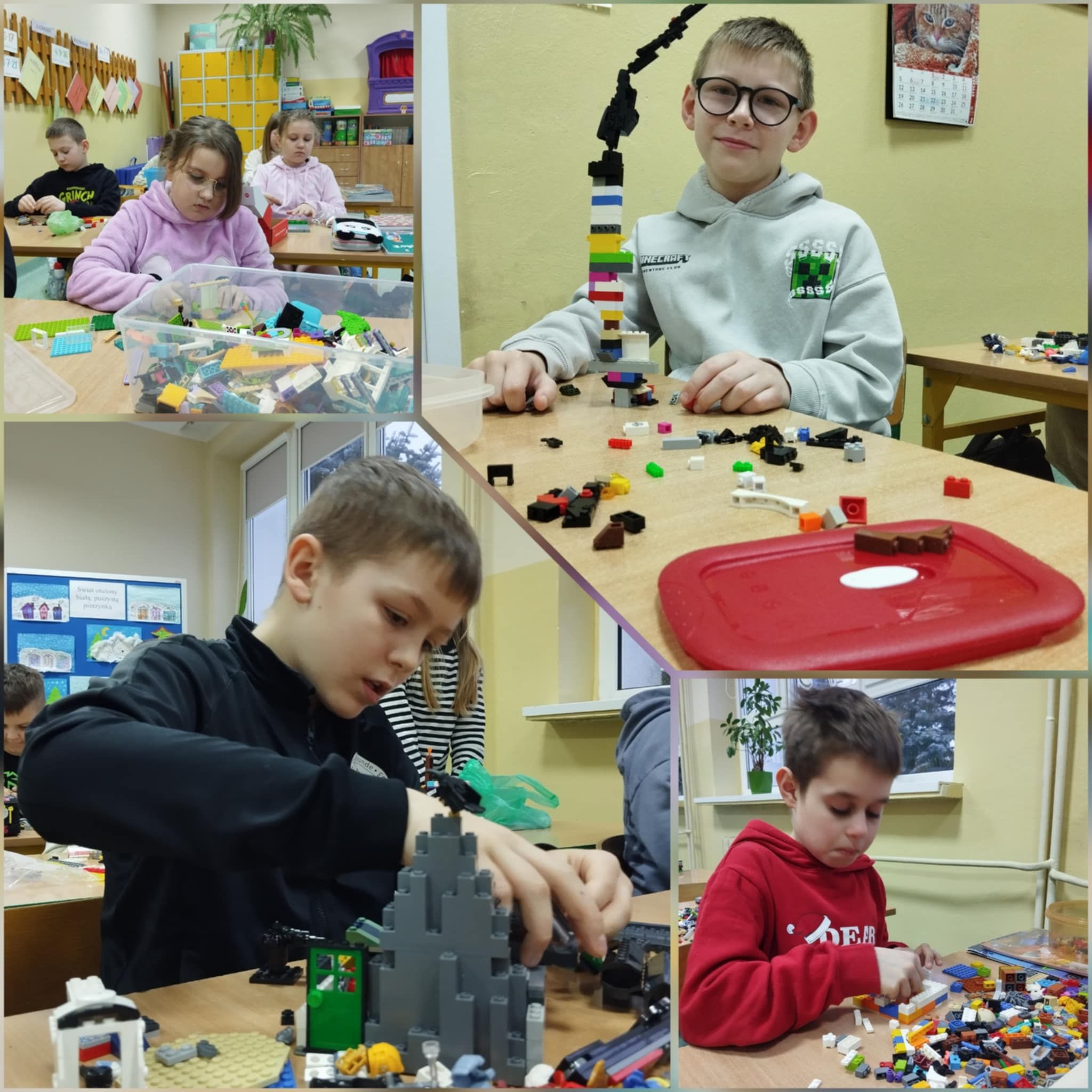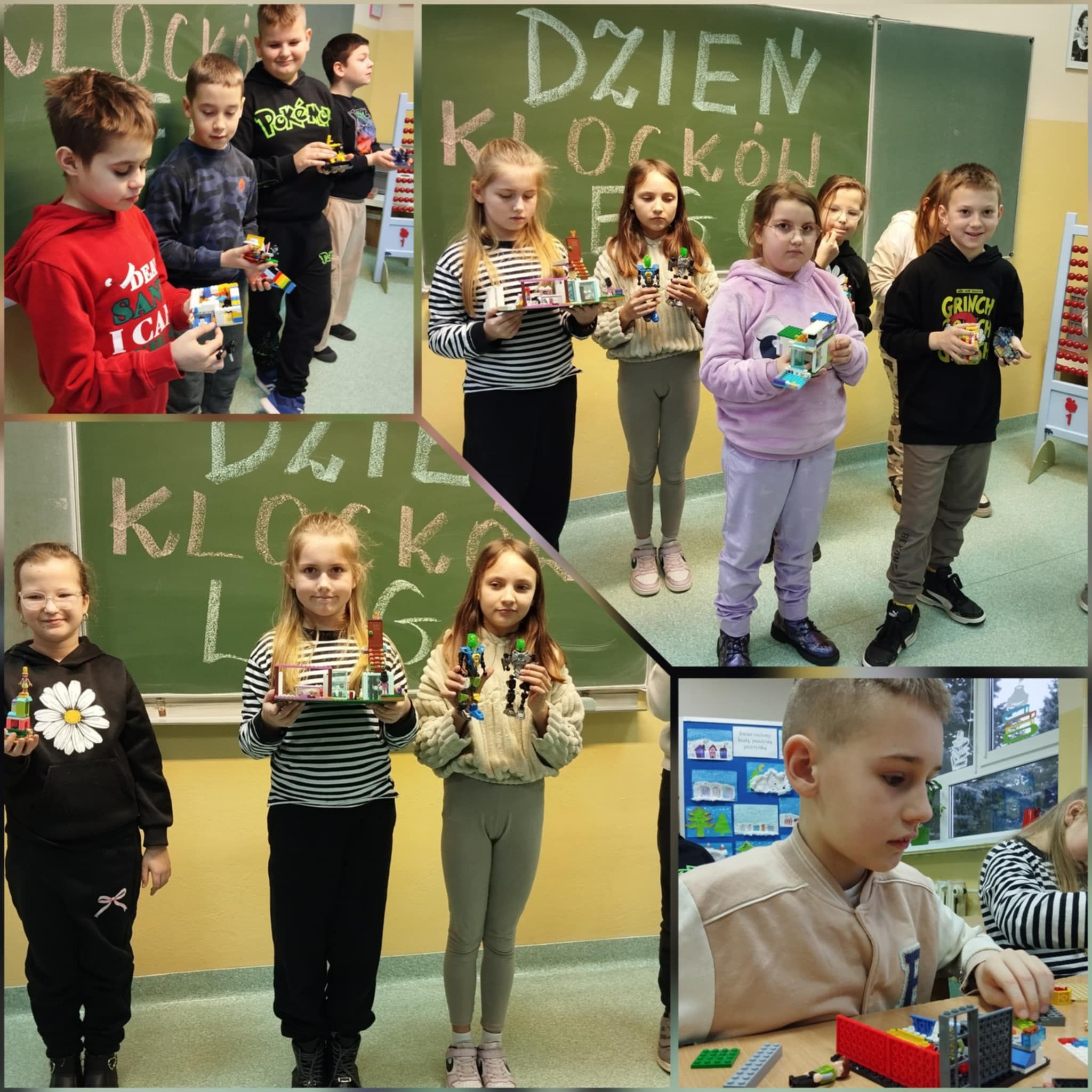 Międzynarodowy Dzień Klocków LEGO obchodzimy 28 stycznia. Z tej okazji w klasie 3a odbył się wyjątkowy Dzień Klocków LEGO, który dostarczył uczniom wiele radości, inspiracji oraz okazji do twórczej zabawy. Tego dnia sala lekcyjna zamieniła się w kolorową przestrzeń pełną klocków i pomysłów. Uczniowie pracowali indywidualnie oraz w zespołach, tworząc różnorodne konstrukcje - od domów i pojazdów, przez roboty, aż po całe fantastyczne miasta. Każda budowla była niepowtarzalna i odzwierciedlała wyobraźnię oraz kreatywność jej autora. Po zakończeniu pracy każdy uczeń zaprezentował swoją budowlę i opowiedział o niej w kilku zdaniach, wyjaśniając, co przedstawia jego konstrukcja i skąd wziął się pomysł na jej wykonanie. Podczas zajęć dzieci uczyły się współpracy, planowania oraz rozwiązywania problemów.