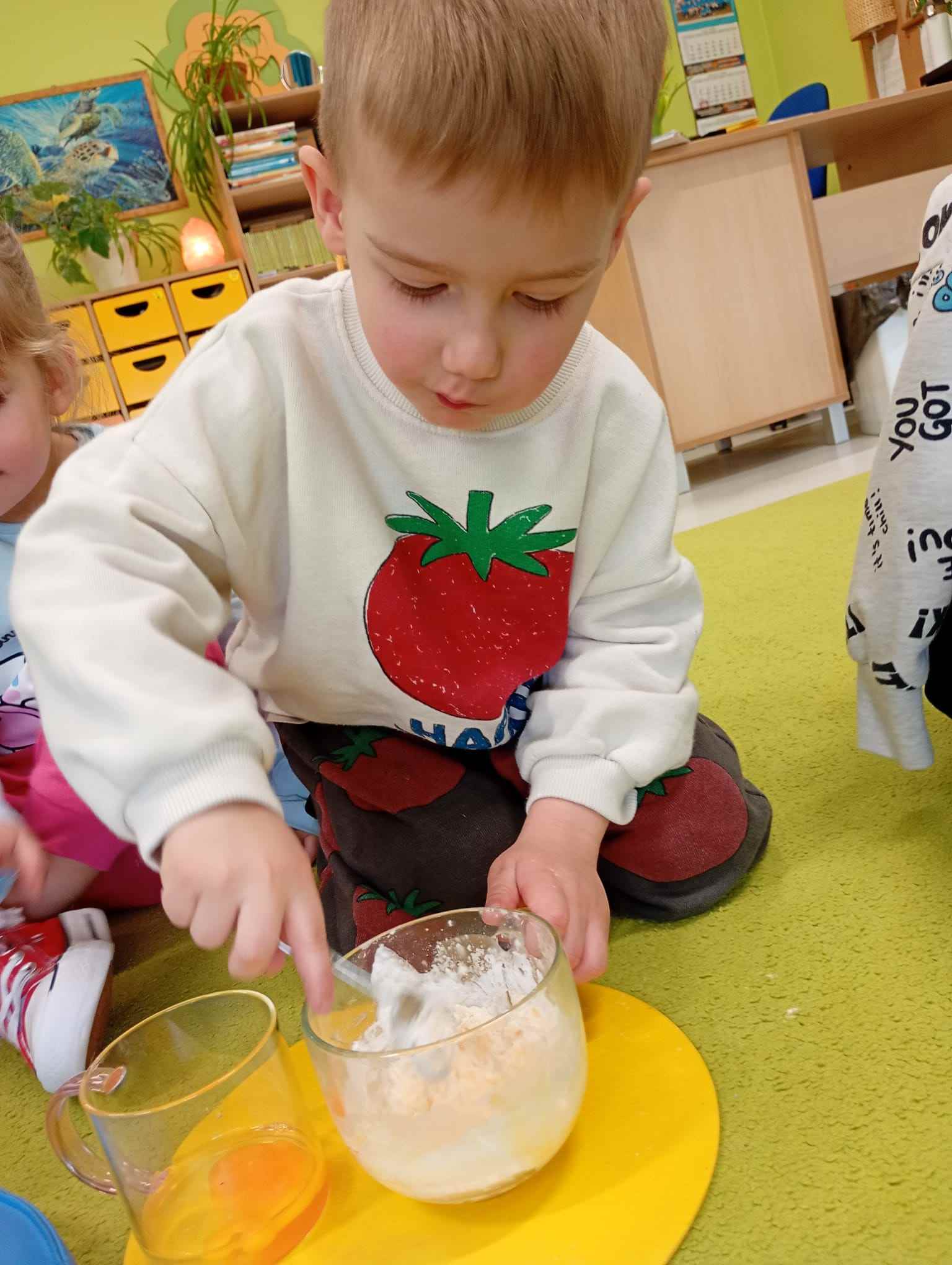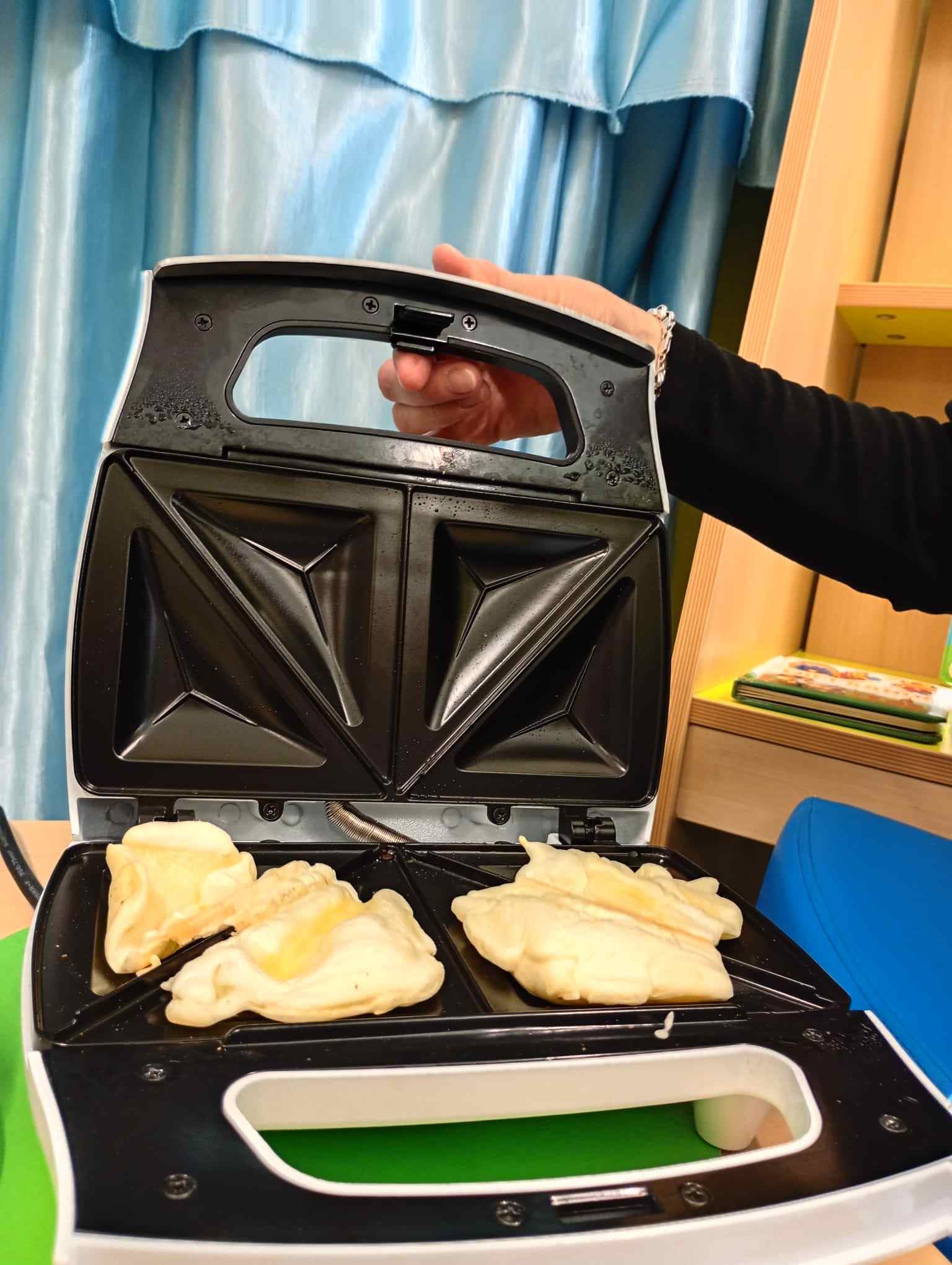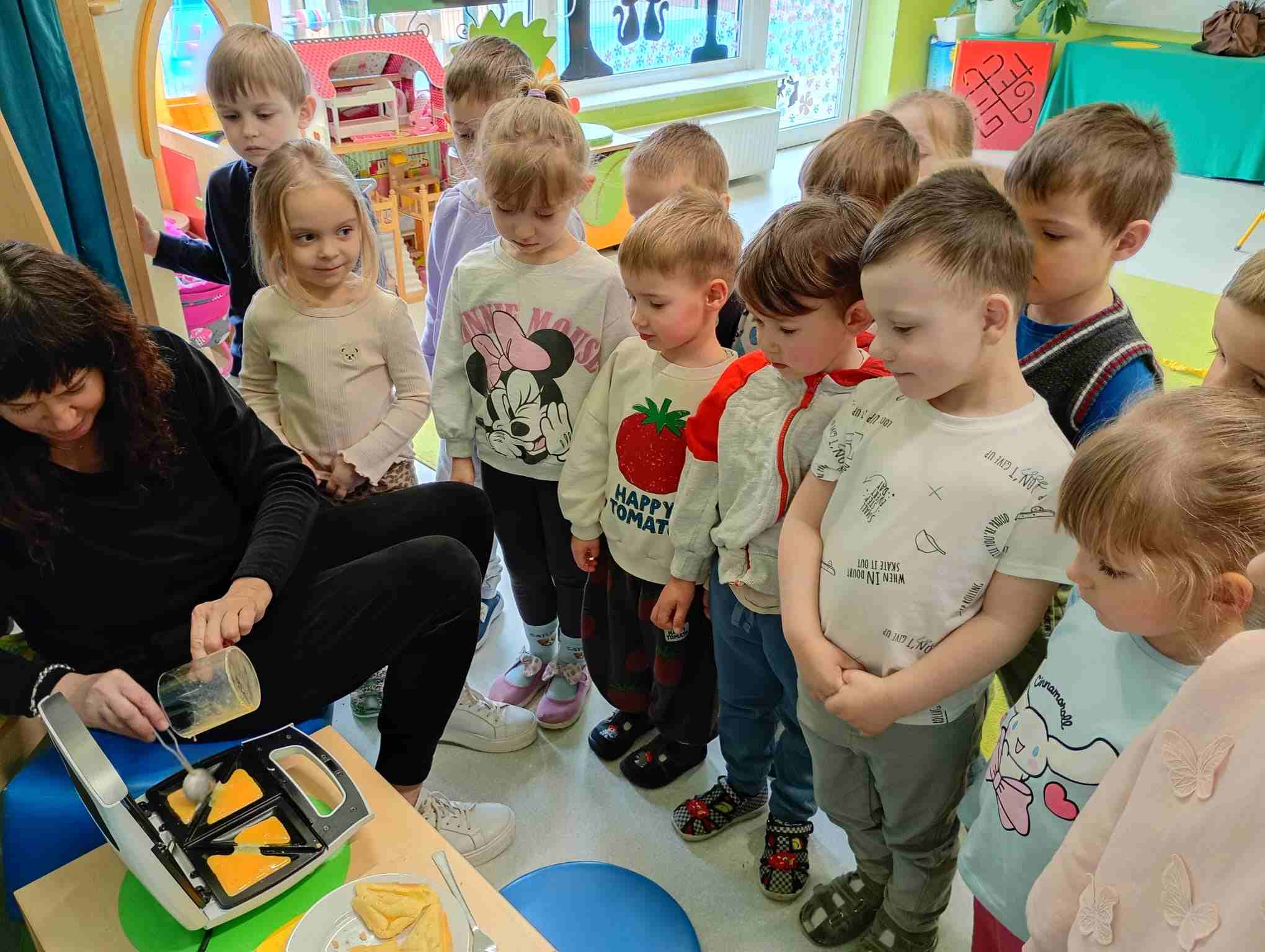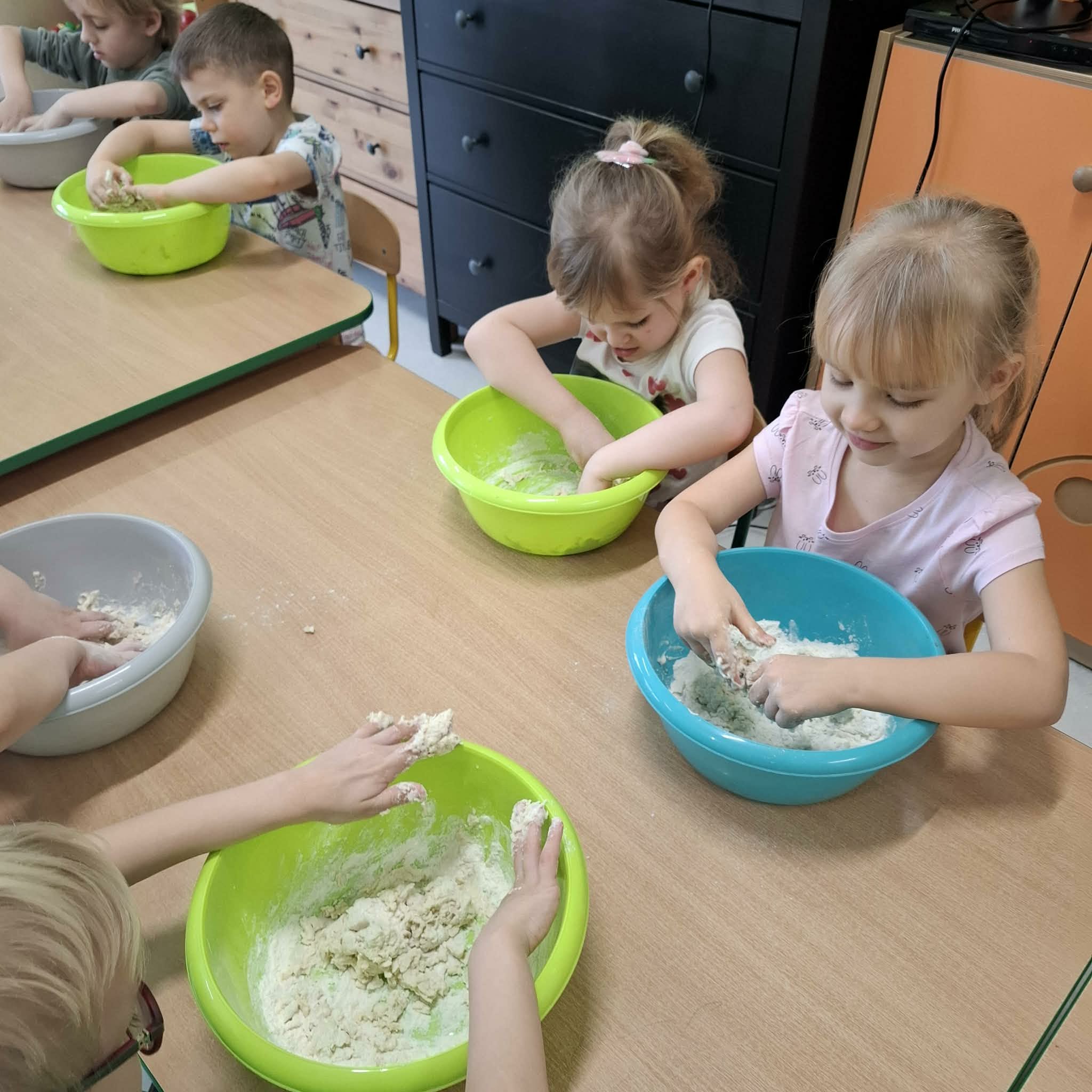 Jak działa opiekacz, do czego potrzebny jest w kuchni zegar, z czego robimy ciasto naleśnikowe, omlet, jajecznicę czy biszkopt? Jak to wszystko zmierzyć i odważyć? To pytania, na które podczas zajęć warsztatowych próbowały uzyskać najmłodszej przedszkolaki. Zajęcia kulinarne łączące wiedzę praktyczna i matematyczna są zawsze na czasie. Nie tylko przed świętami.