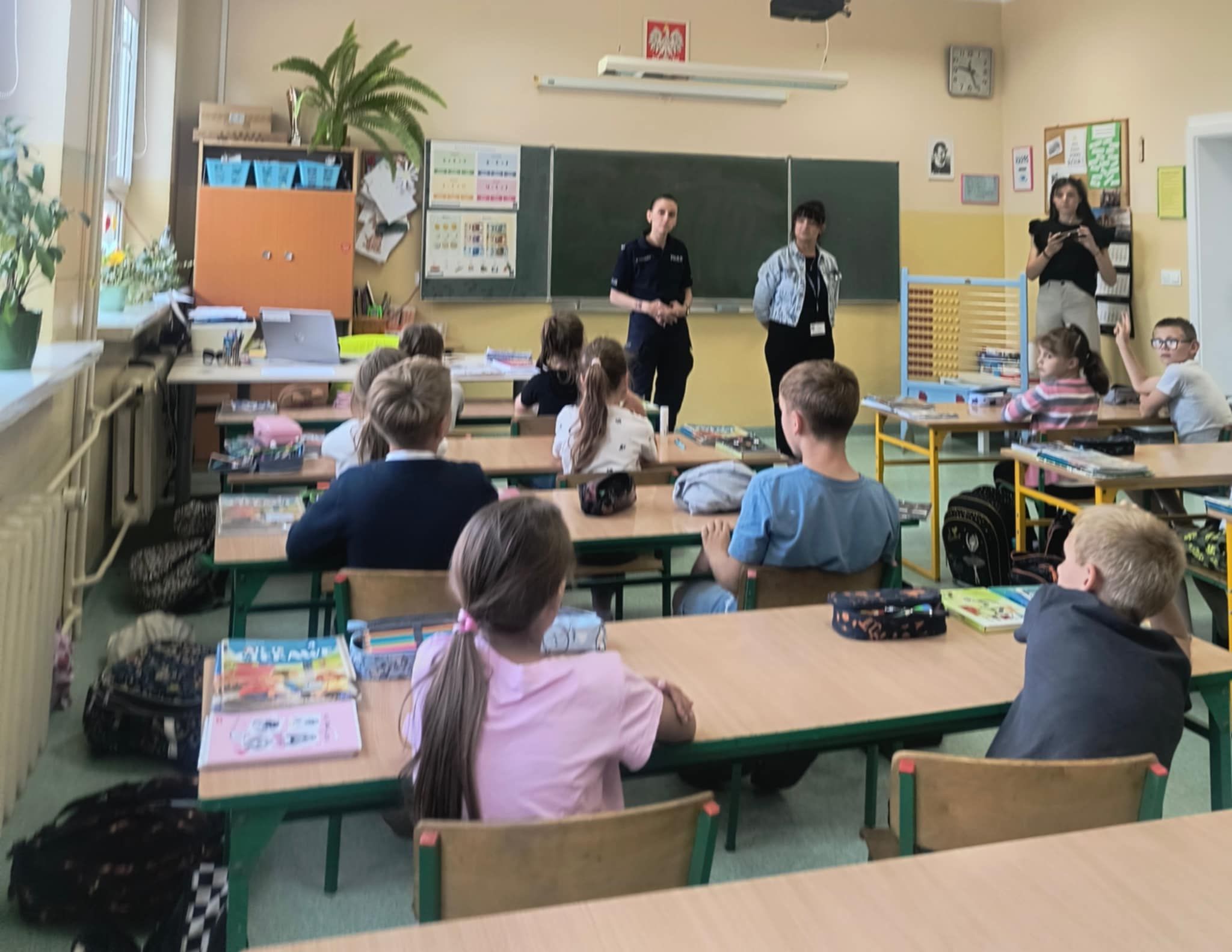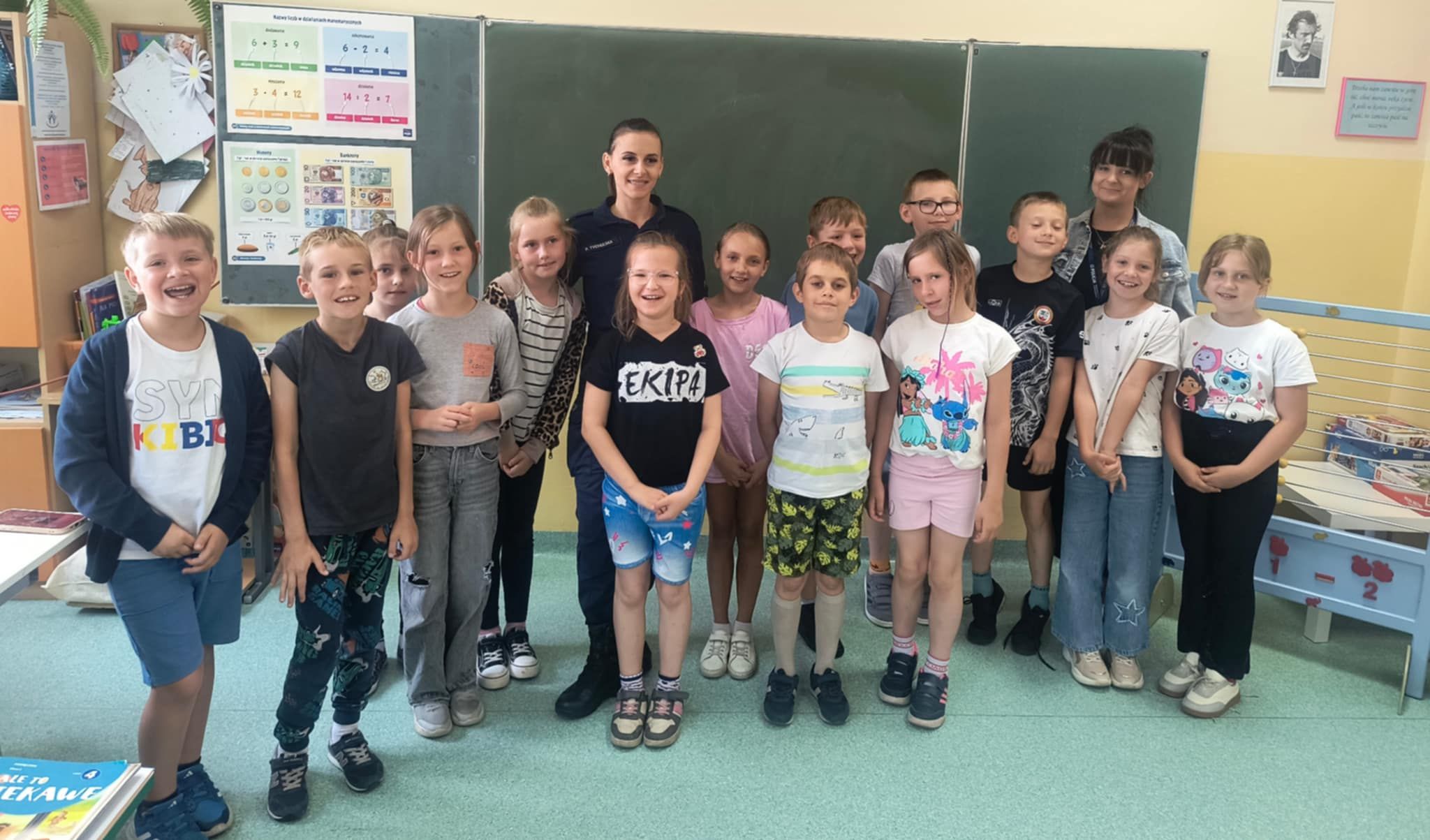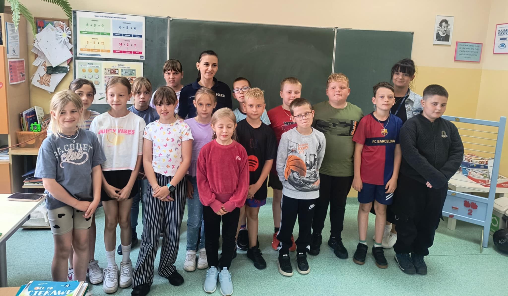 W dniu 16 czerwca 2025 roku odbyło się spotkanie najmłodszych uczniów naszej szkoły ze Specjalistą ds. Nieletnich p. Pauliną Stawirej oraz sierż. p. Pauliną Tychulską z Komendy Powiatowej Policji w Goleniowie, którego celem było przypomnienie zasad bezpiecznego zachowania podczas letniego wypoczynku. Zwrócono uwagę na najważniejsze zagrożenia, jakie mogą wystąpić w czasie wakacji. Omówiono zasady bezpieczeństwa w ruchu drogowym, bezpiecznego korzystania z kąpielisk i akwenów wodnych oraz postępowania w sytuacjach zagrożenia, np. zagubienie się. Poruszono temat zachowania ostrożności wobec nieznajomych oraz bezpieczeństwa w sieci. Podczas zajęć uczniowie mieli możliwość zadawania pytań oraz dzielenia się swoimi doświadczeniami. Spotkanie przebiegło w miłej atmosferze, a przekazane informacje były wartościowe i z pewnością przyczynią się do większej świadomości uczniów w zakresie bezpiecznego spędzania wolnego czasu.
