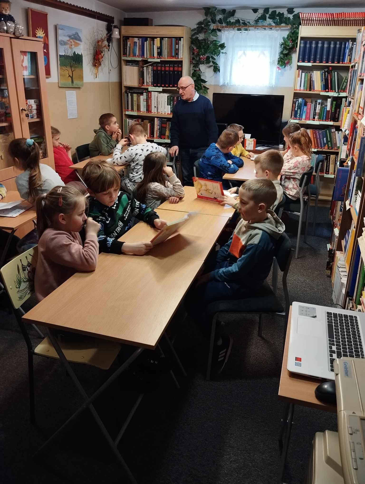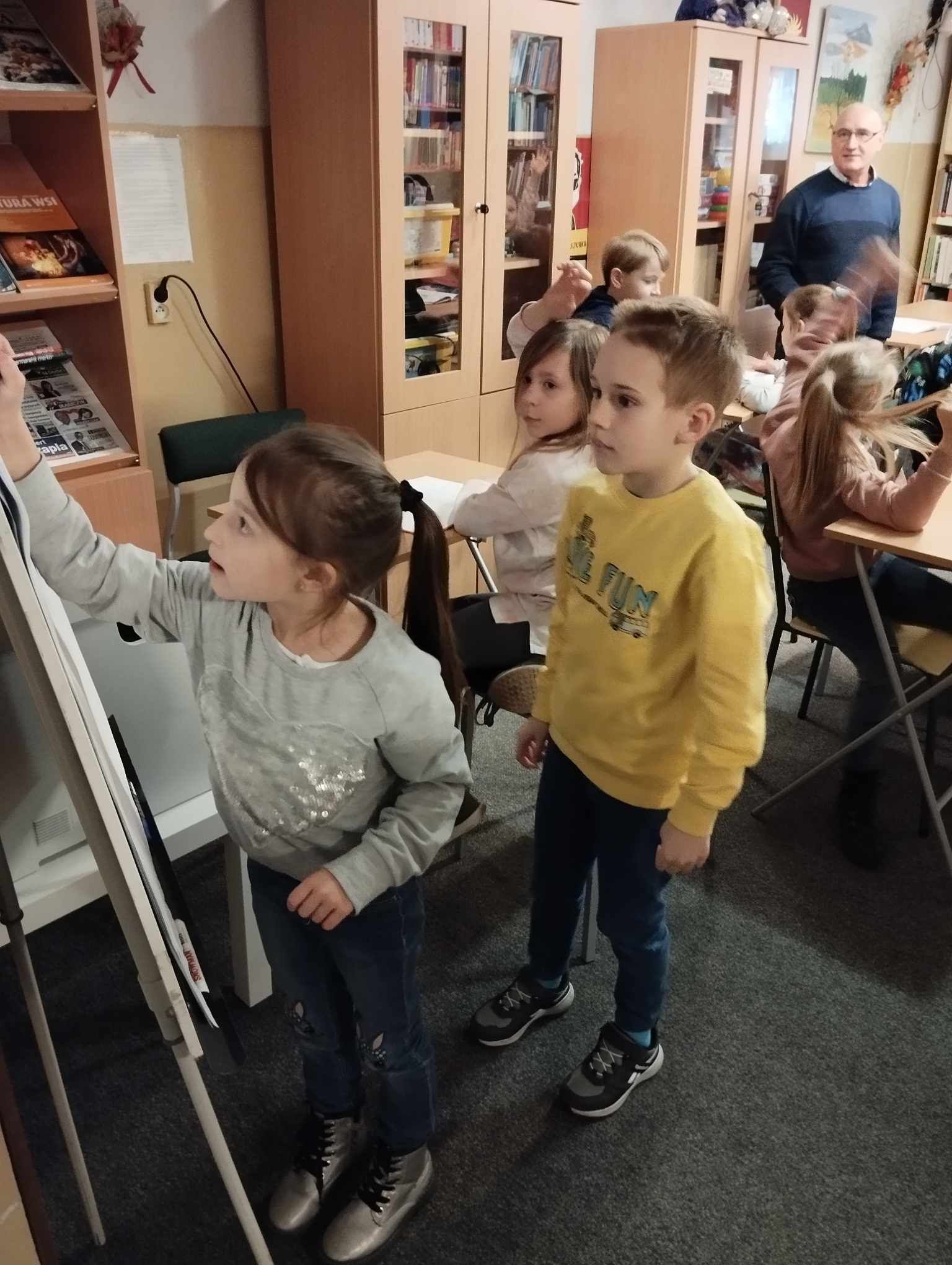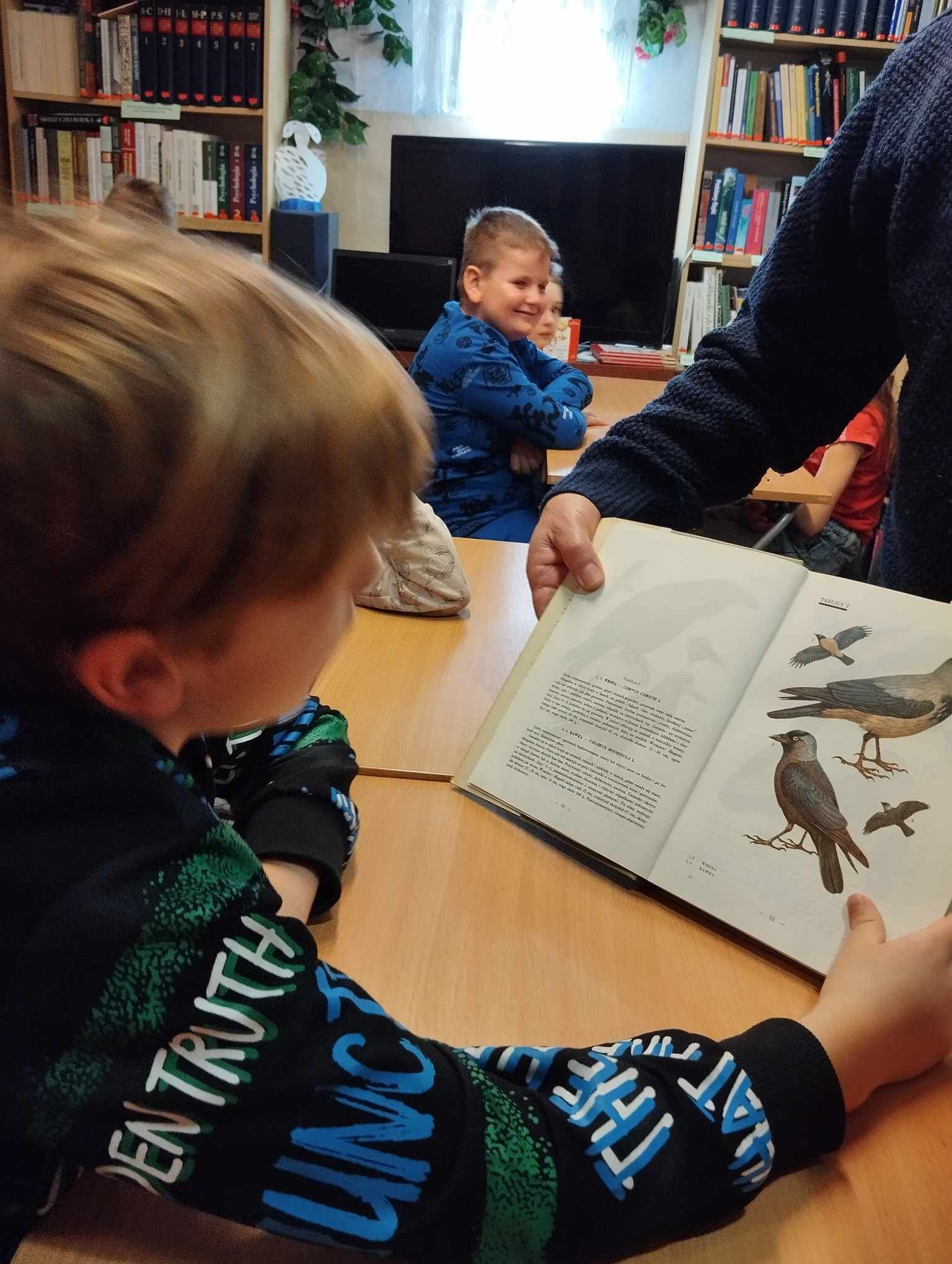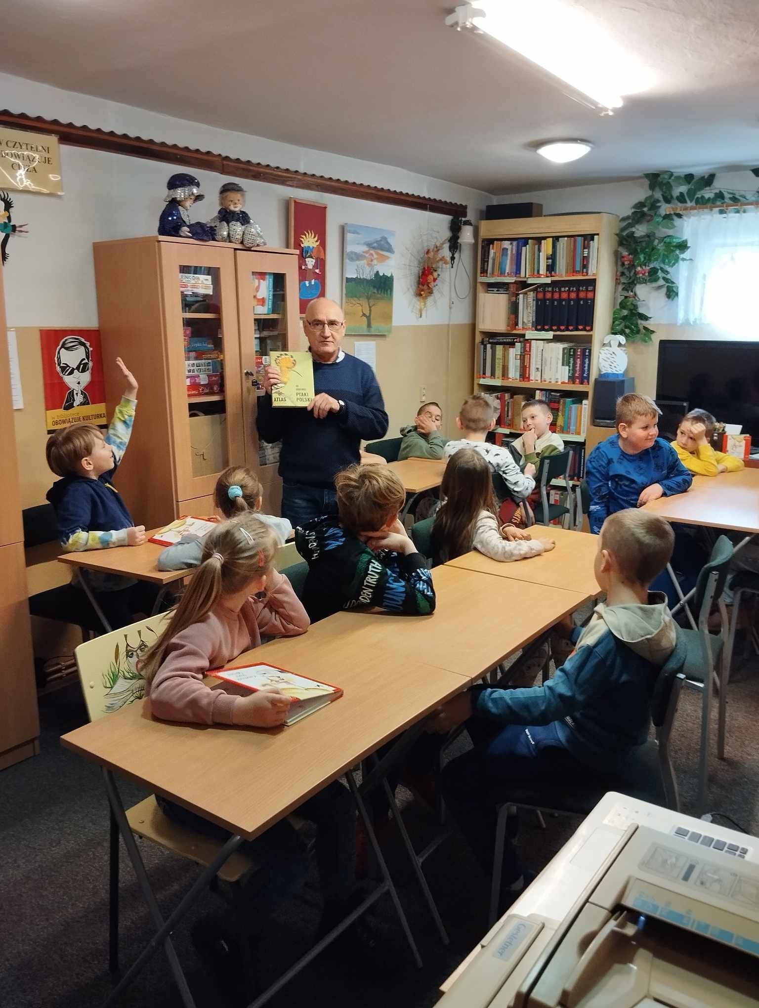 „Kapelusz Pani Wrony” Danuty Parlak z pewnością na długo zapadnie w pamięci pierwszoklasistów! Zajęcia biblioteczne poprowadził p. Krzysztof Górecki, dziękujemy!