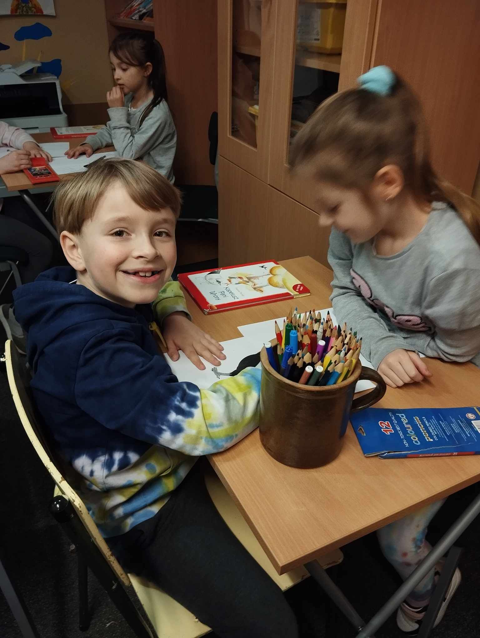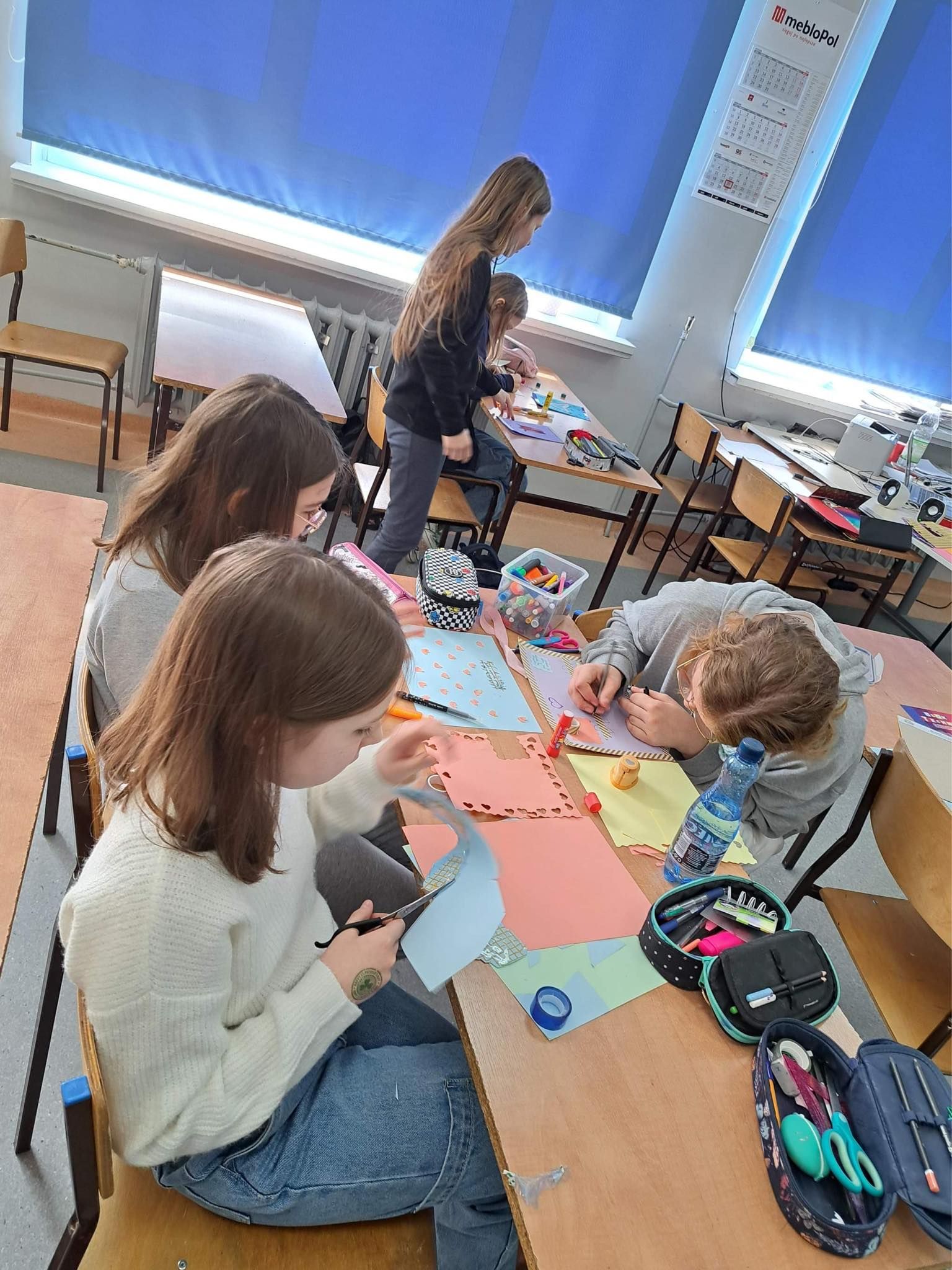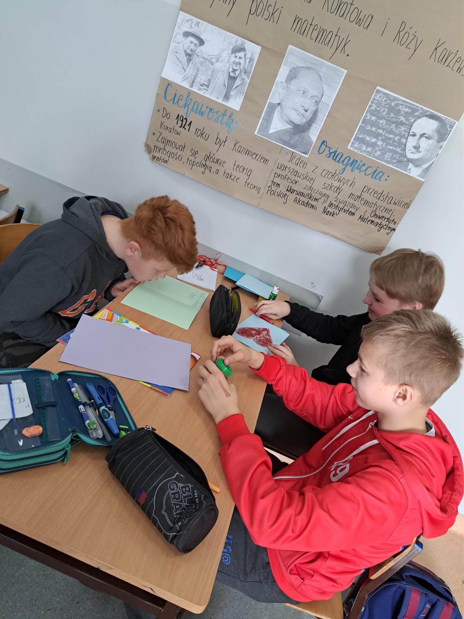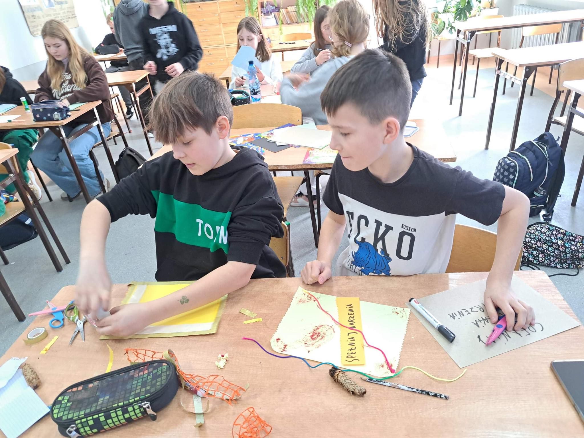 Uczniowie klasy 5a uczestniczyli w zajęciach warsztatowych. Obejrzeli filmik, na którym mogli zobaczyć, jak wygląda codzienność u osób z Zespołem Downa, oraz prezentację dzięki której poznali Klaudię i jej życie. Uczniowie byli bardzo zaangażowani i sami podsunęli mi pomysł o zrobieniu kartek dla Klaudii. Cała klasa pracowała bardzo twórczo i aktywnie wykonując swoje prace, które zostały spakowane i w najbliższym czasie zostaną przekazane adresatowi.