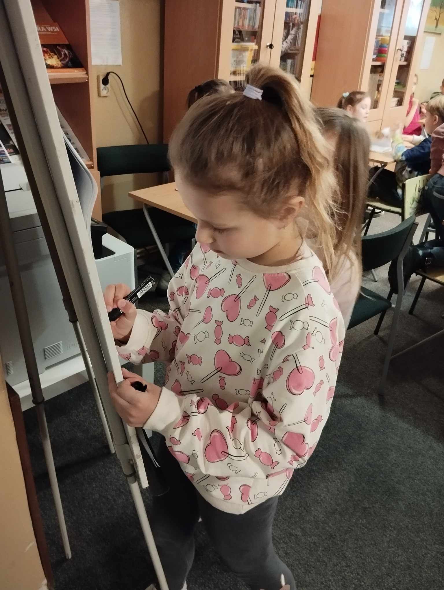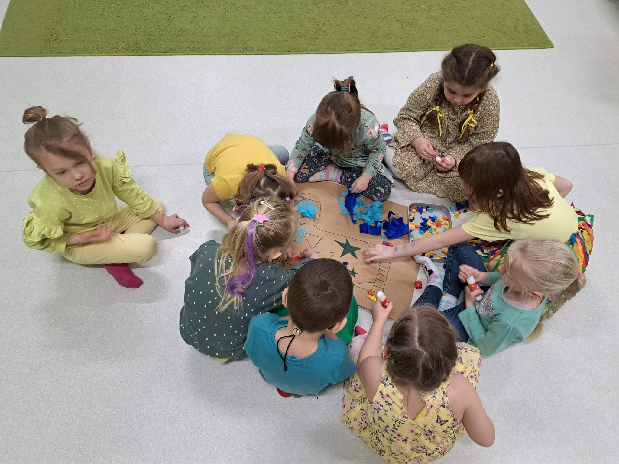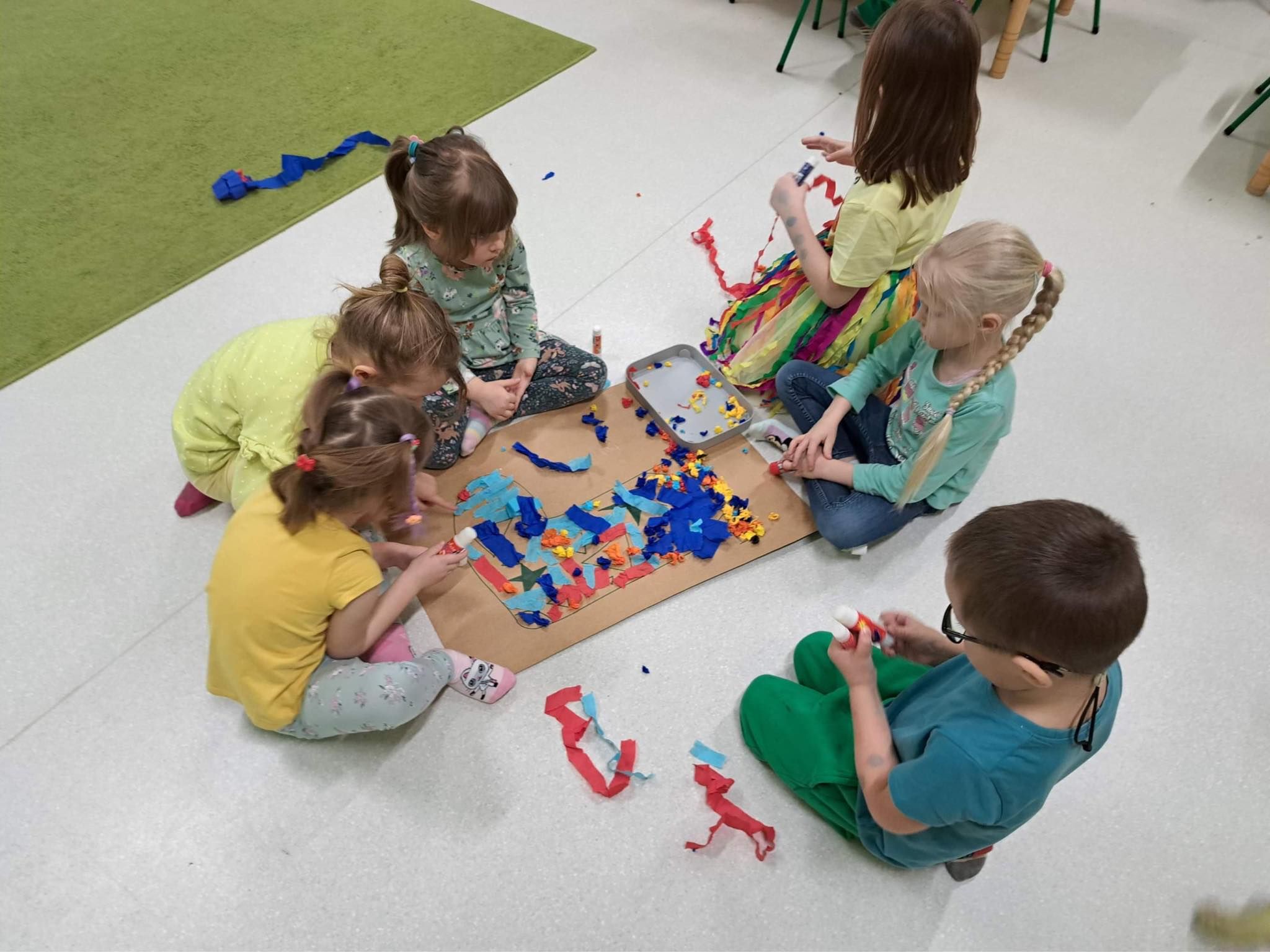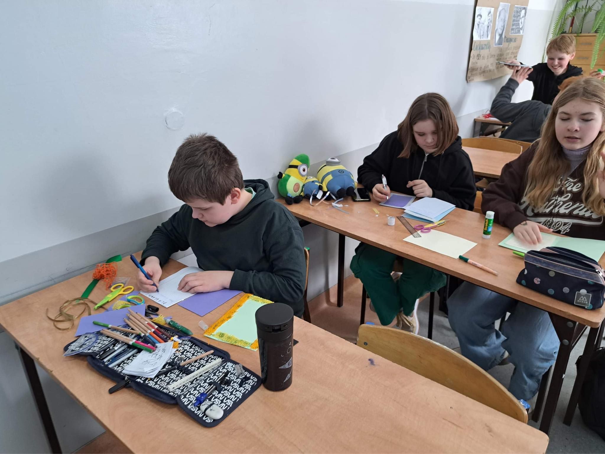 Uczniowie klasy 5a uczestniczyli w zajęciach warsztatowych. Obejrzeli filmik, na którym mogli zobaczyć, jak wygląda codzienność u osób z Zespołem Downa, oraz prezentację dzięki której poznali Klaudię i jej życie. Uczniowie byli bardzo zaangażowani i sami podsunęli mi pomysł o zrobieniu kartek dla Klaudii. Cała klasa pracowała bardzo twórczo i aktywnie wykonując swoje prace, które zostały spakowane i w najbliższym czasie zostaną przekazane adresatowi.