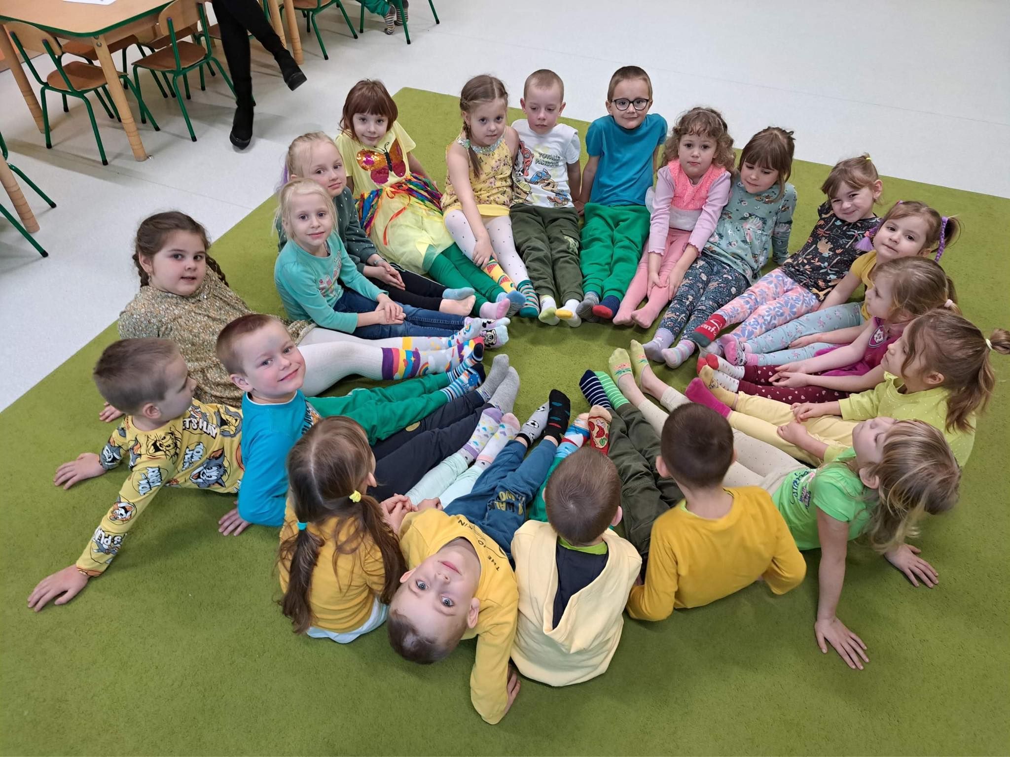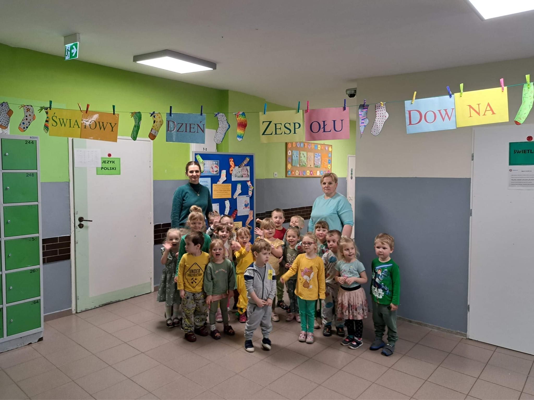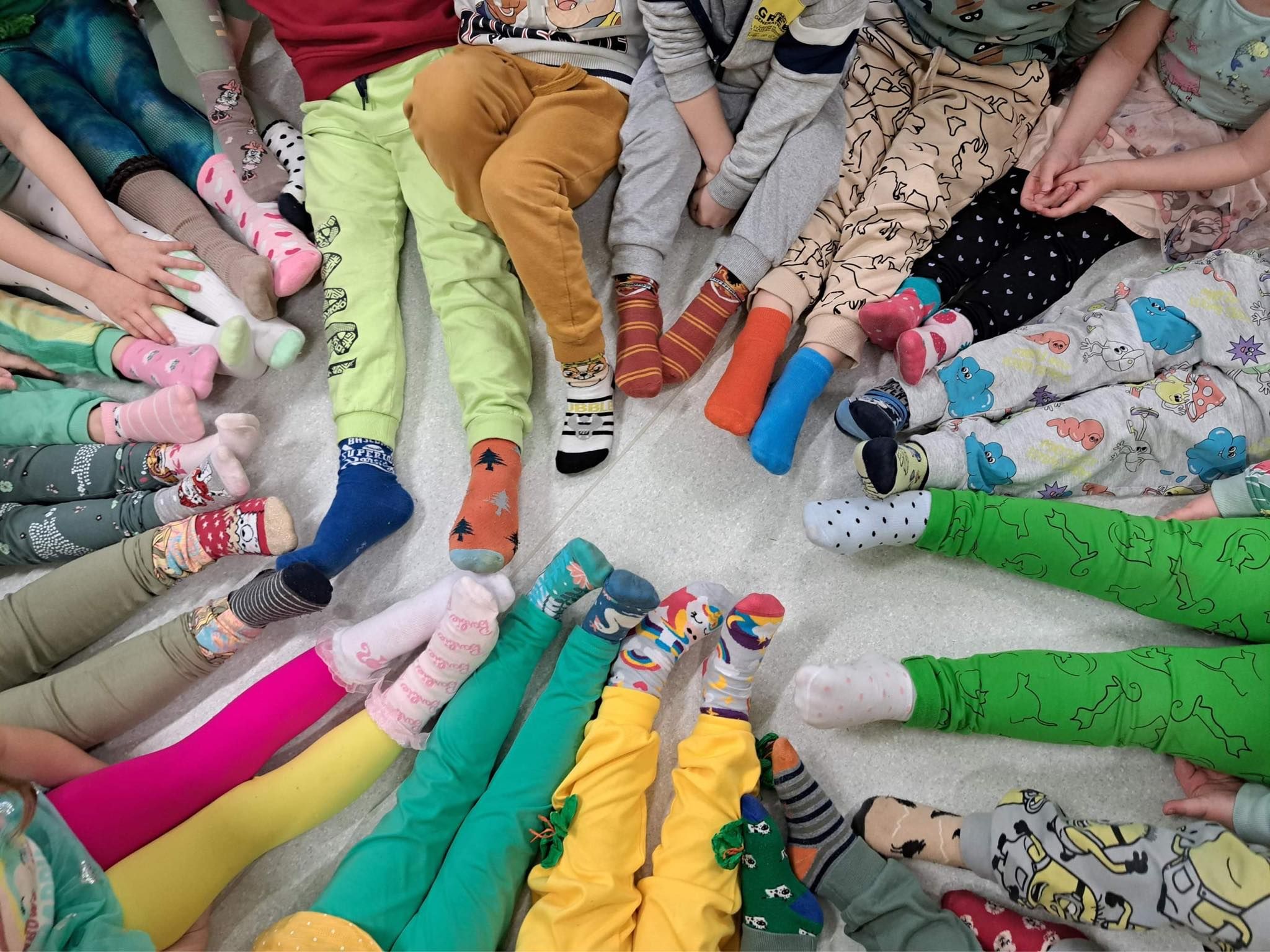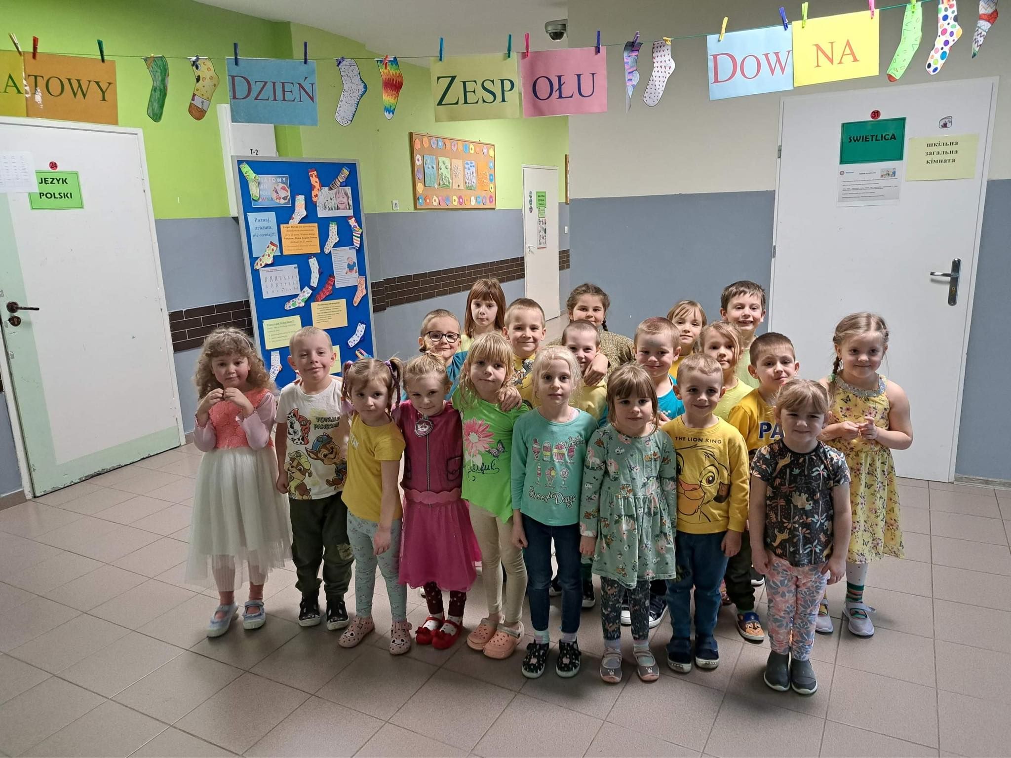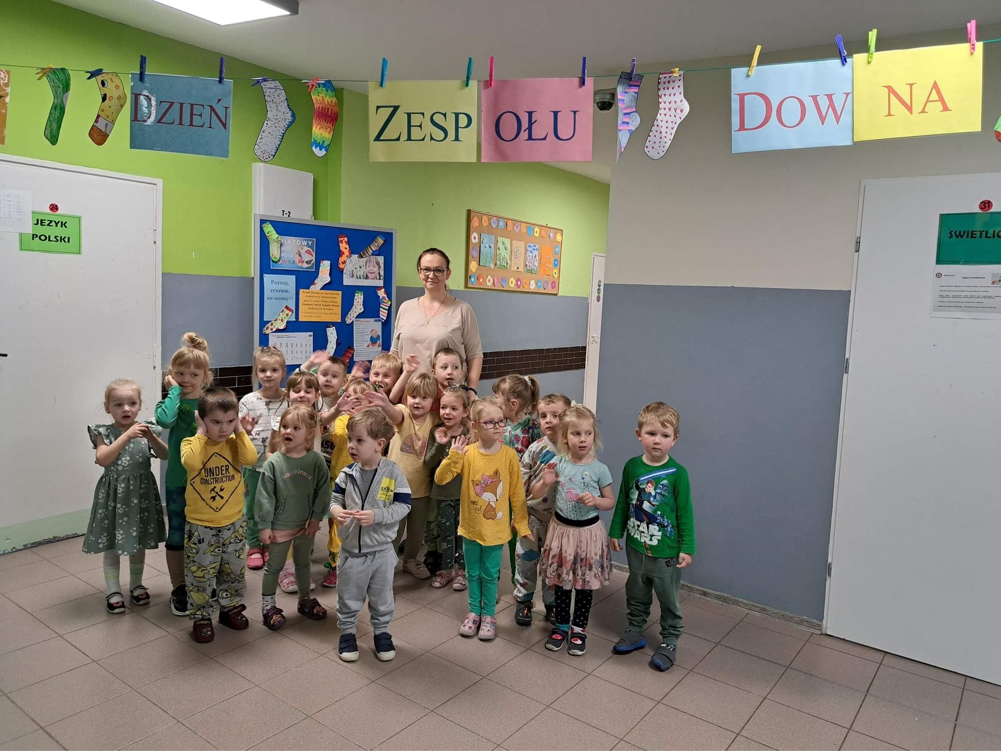 Druga część obchodów tego dnia odbyła się w oddziałach przedszkolnych, były zajęcia ruchowe oraz praca w grupach i na znak jedności z Osobami z Zespołem Downa wykonali piękne duże skarpety. Zapraszam do galerii zdjęć.