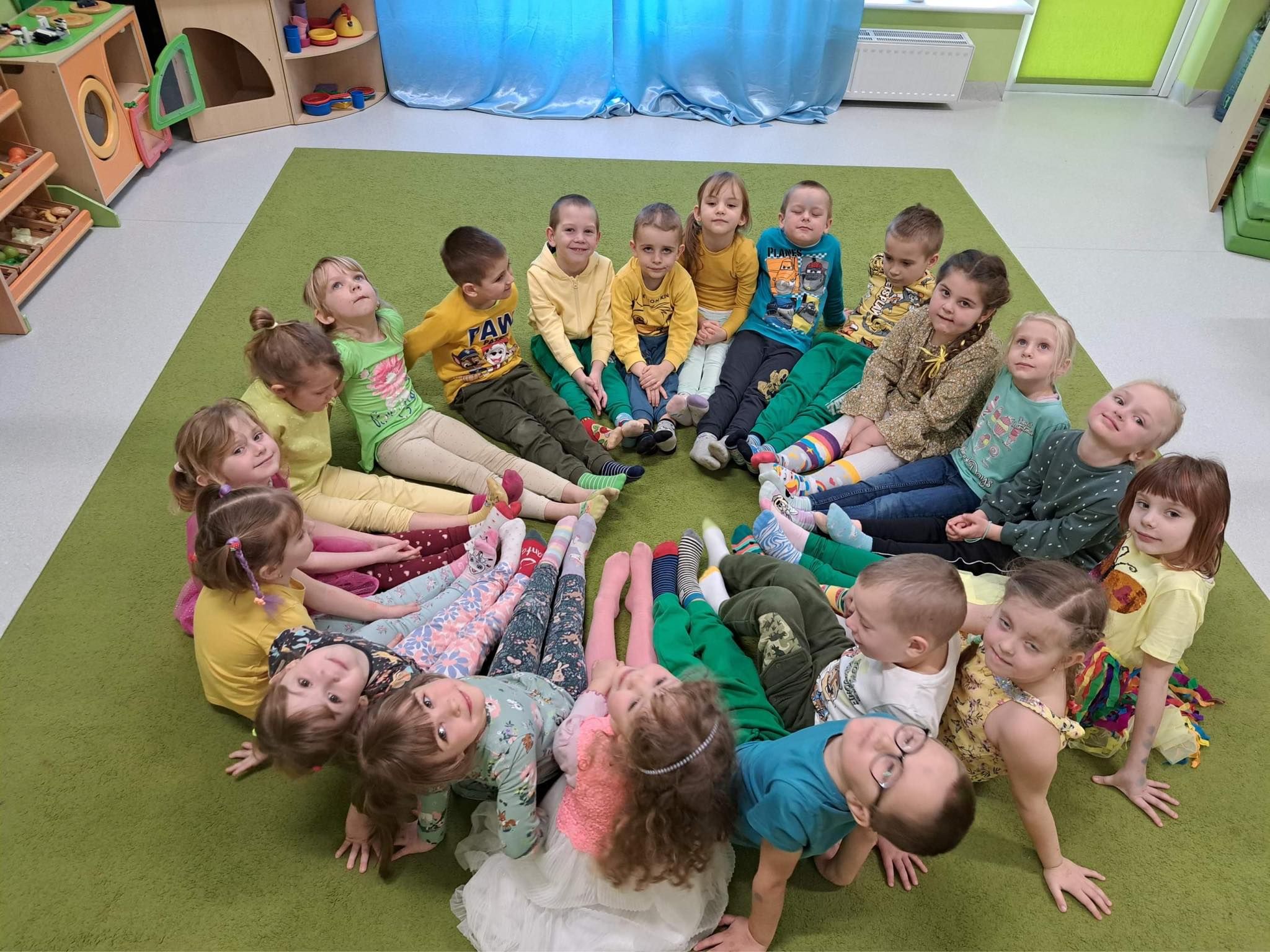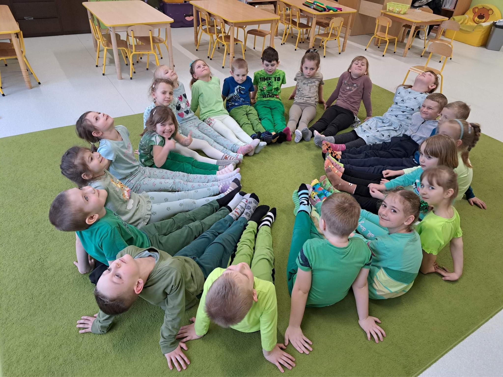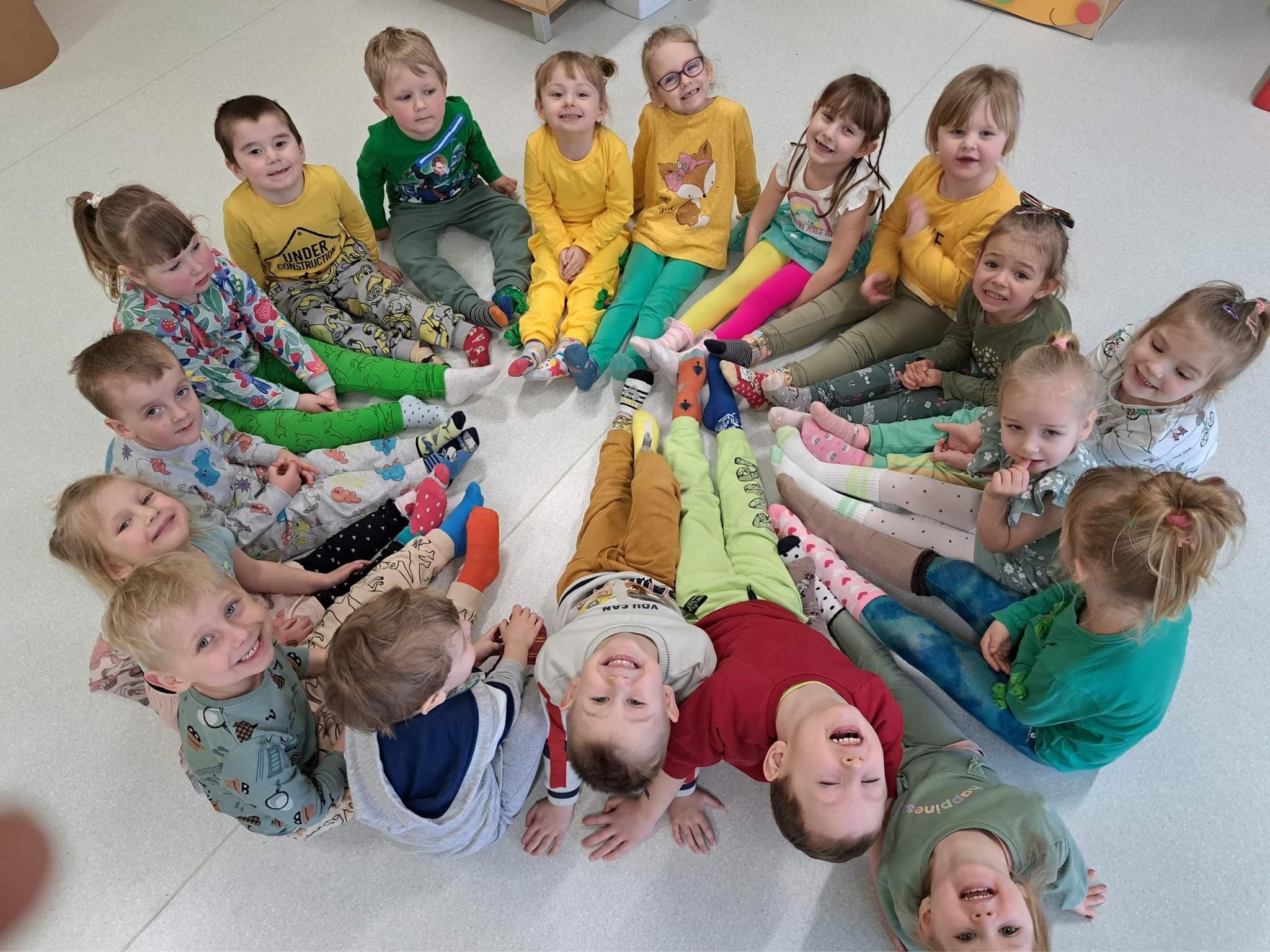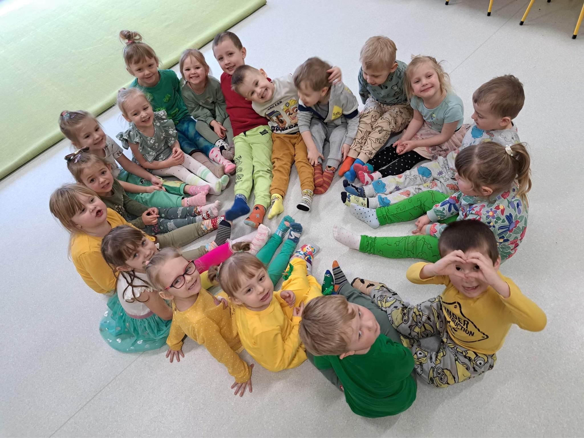 Druga część obchodów tego dnia odbyła się w oddziałach przedszkolnych, były zajęcia ruchowe oraz praca w grupach i na znak jedności z Osobami z Zespołem Downa wykonali piękne duże skarpety. Zapraszam do galerii zdjęć.