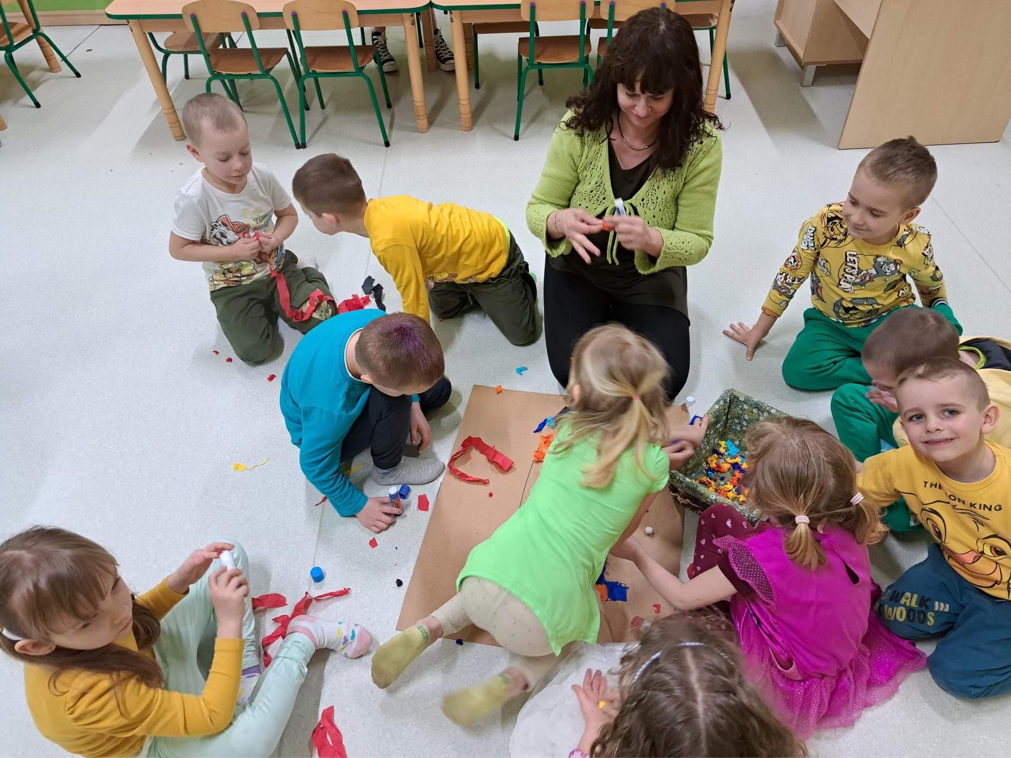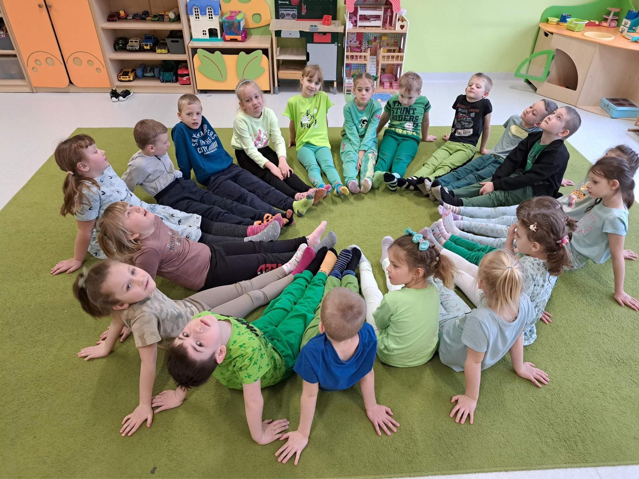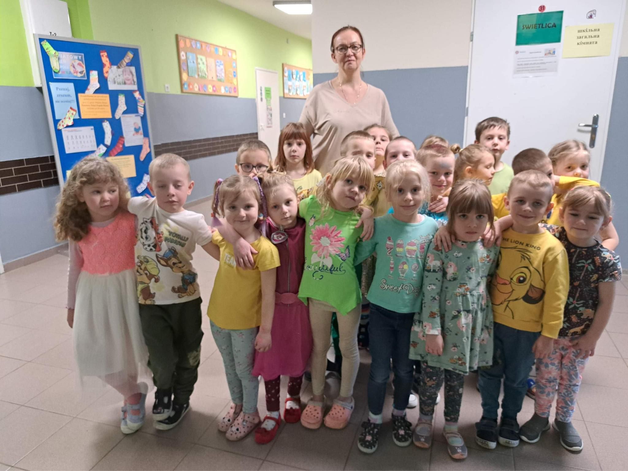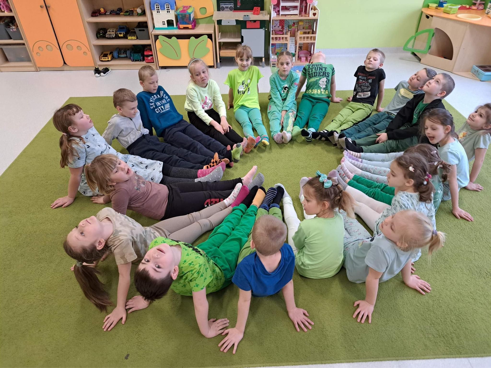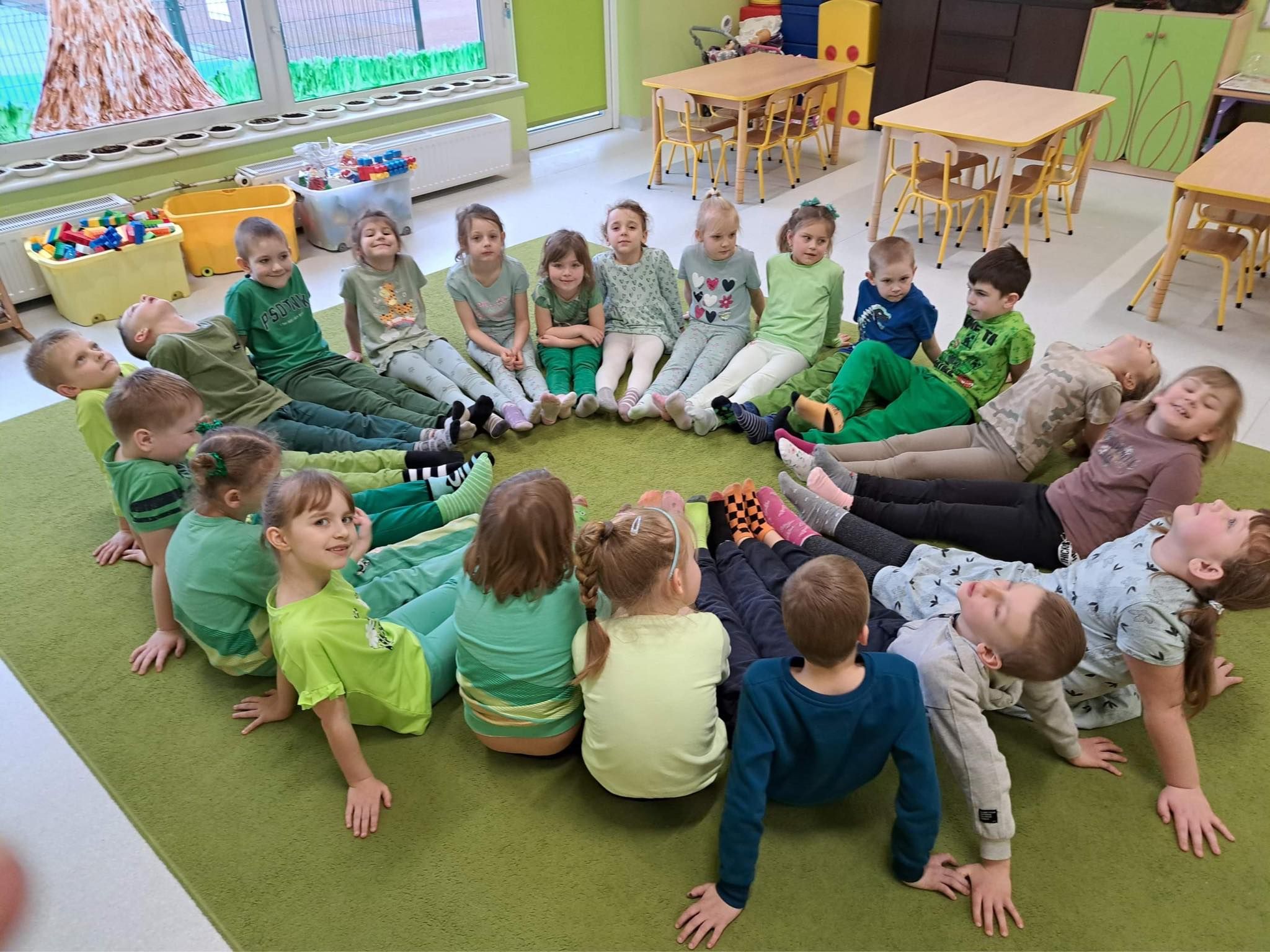 Druga część obchodów tego dnia odbyła się w oddziałach przedszkolnych, były zajęcia ruchowe oraz praca w grupach i na znak jedności z Osobami z Zespołem Downa wykonali piękne duże skarpety. Zapraszam do galerii zdjęć.