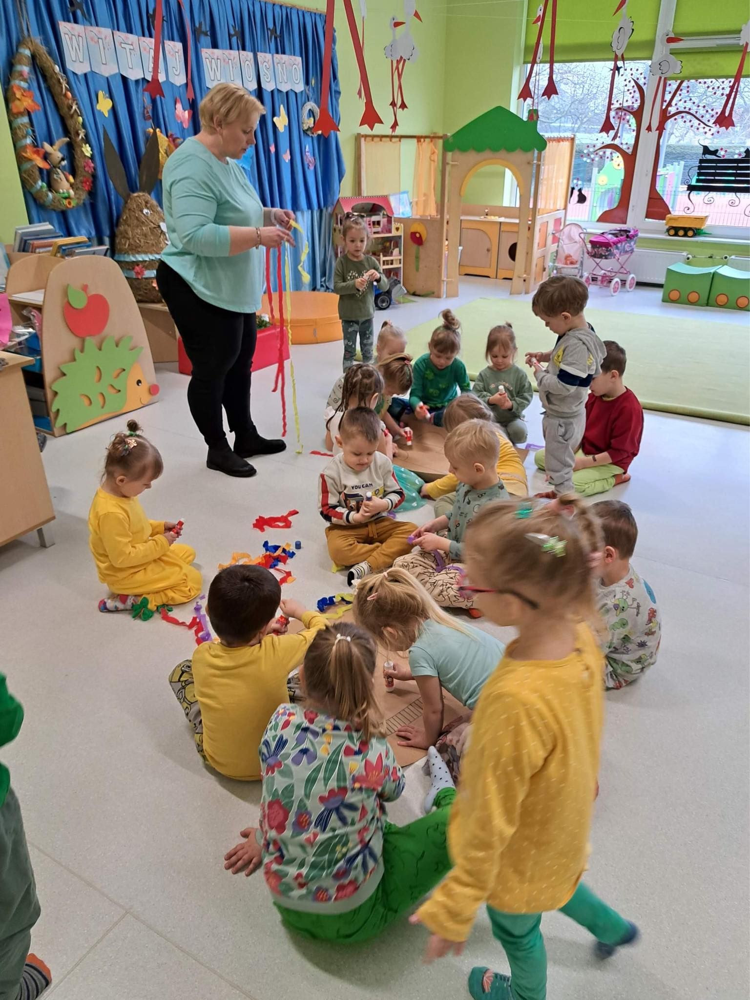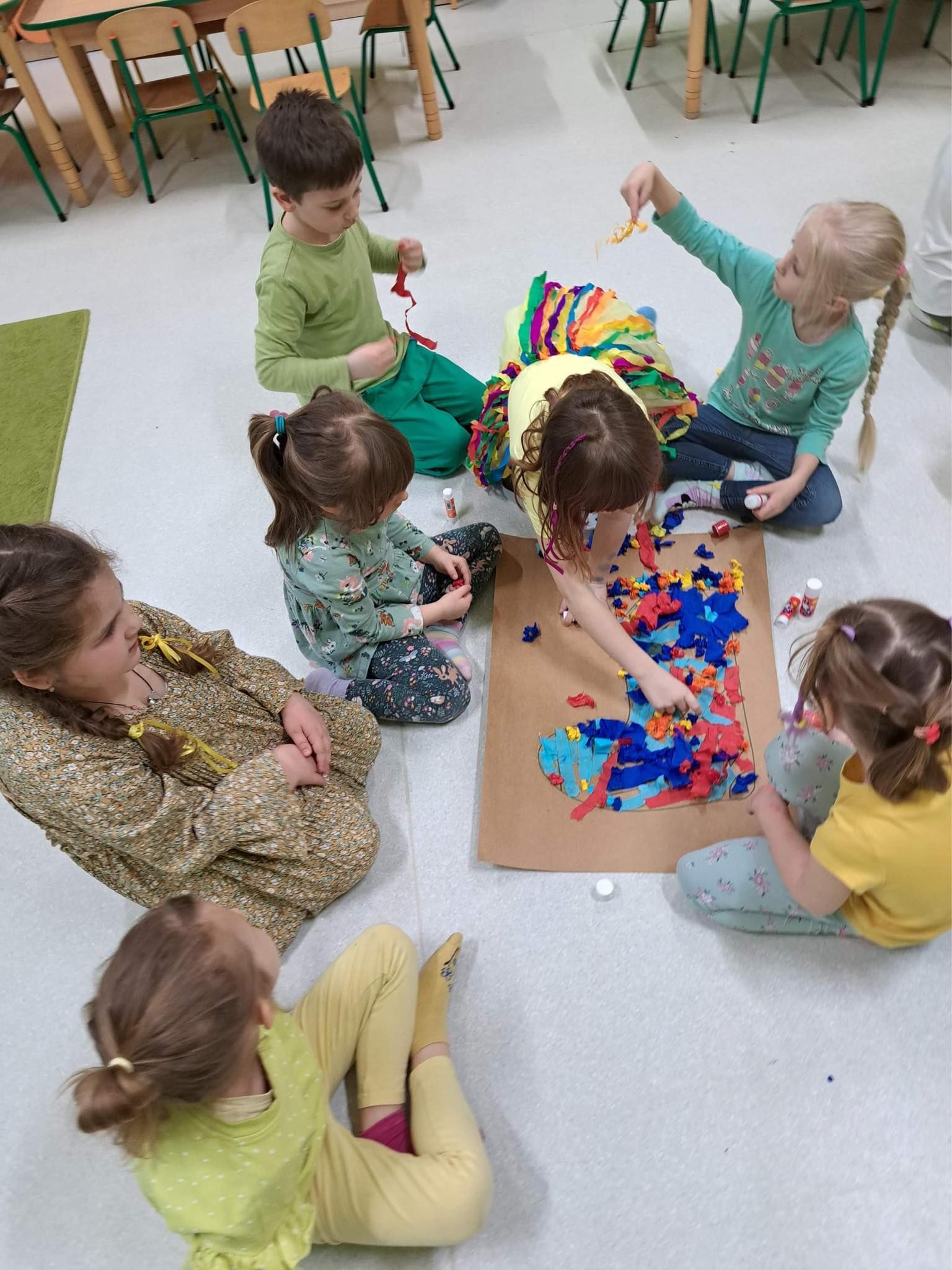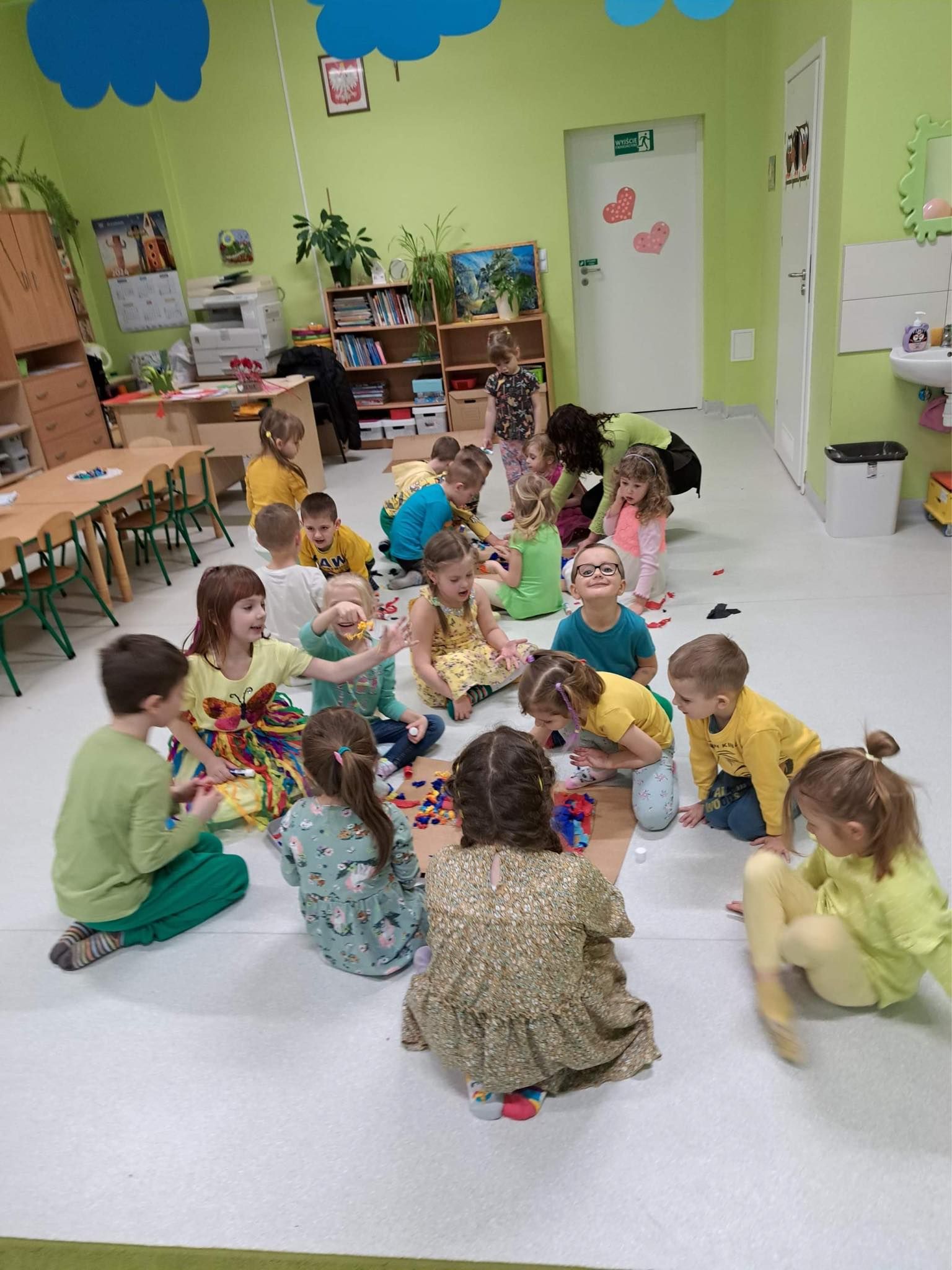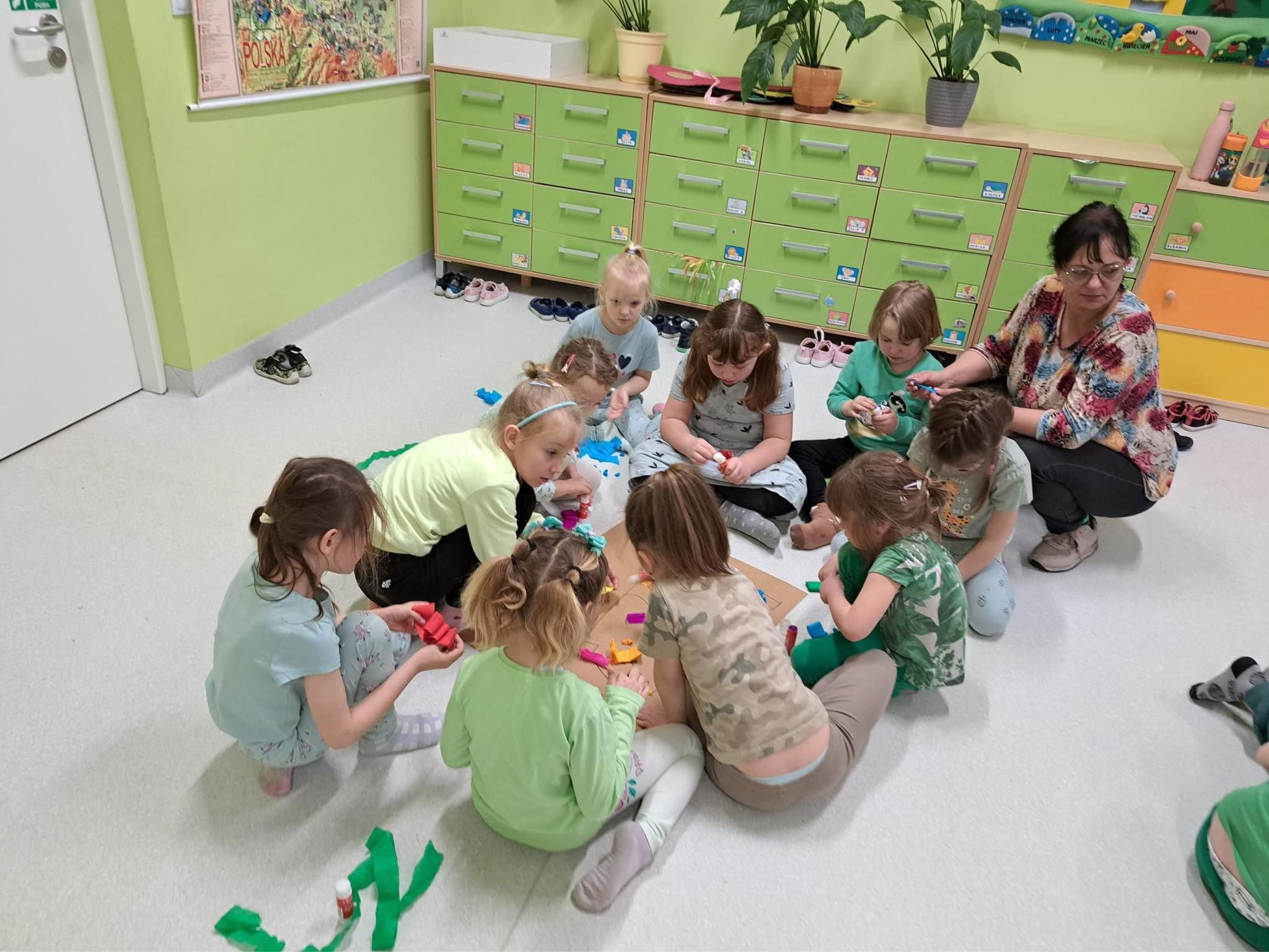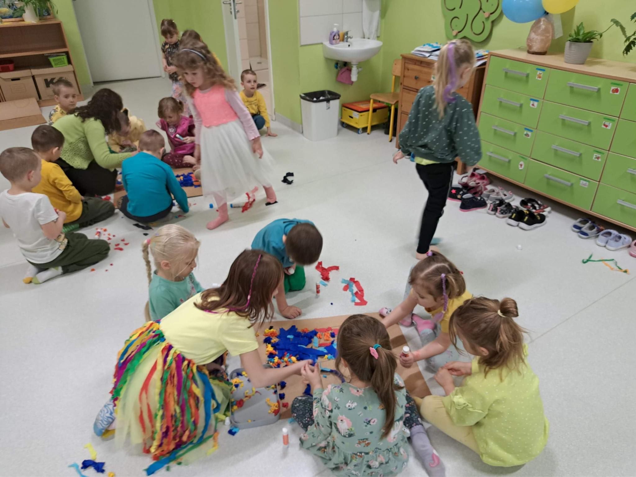 Druga część obchodów tego dnia odbyła się w oddziałach przedszkolnych, były zajęcia ruchowe oraz praca w grupach i na znak jedności z Osobami z Zespołem Downa wykonali piękne duże skarpety. Zapraszam do galerii zdjęć.