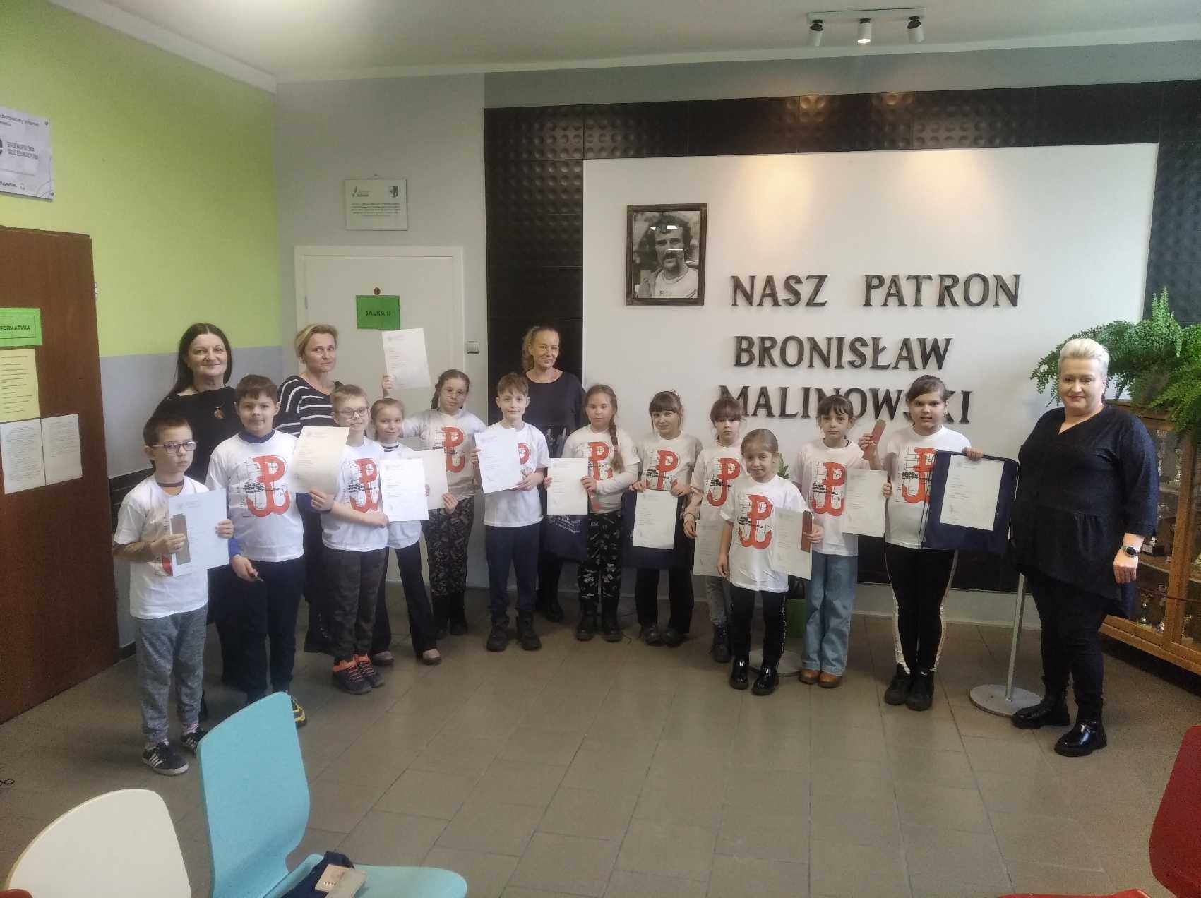W nagrodę za ciężką pracę wszyscy otrzymali dyplomy, koszulki z logo Polski Walczącej oraz inne patriotyczne gadżety, które uczniowie wraz z gratulacjami odebrali od pani dyrektor Tatiana Olbert. Podziękowania również należą się wychowawczyniom oraz rodzicom.