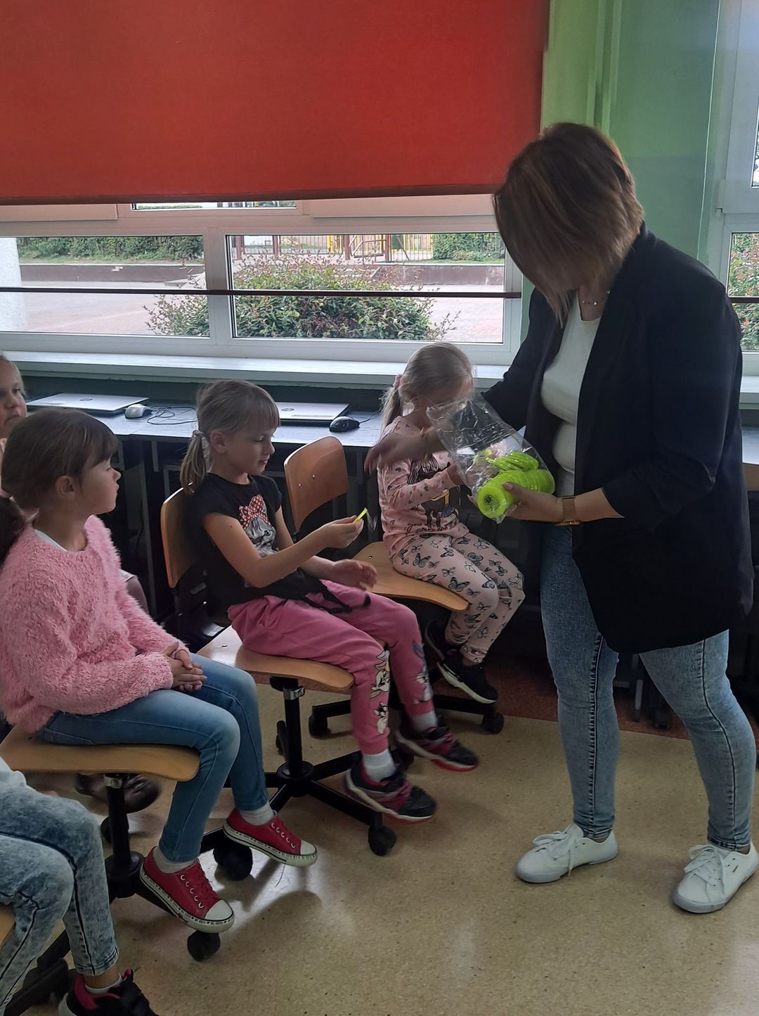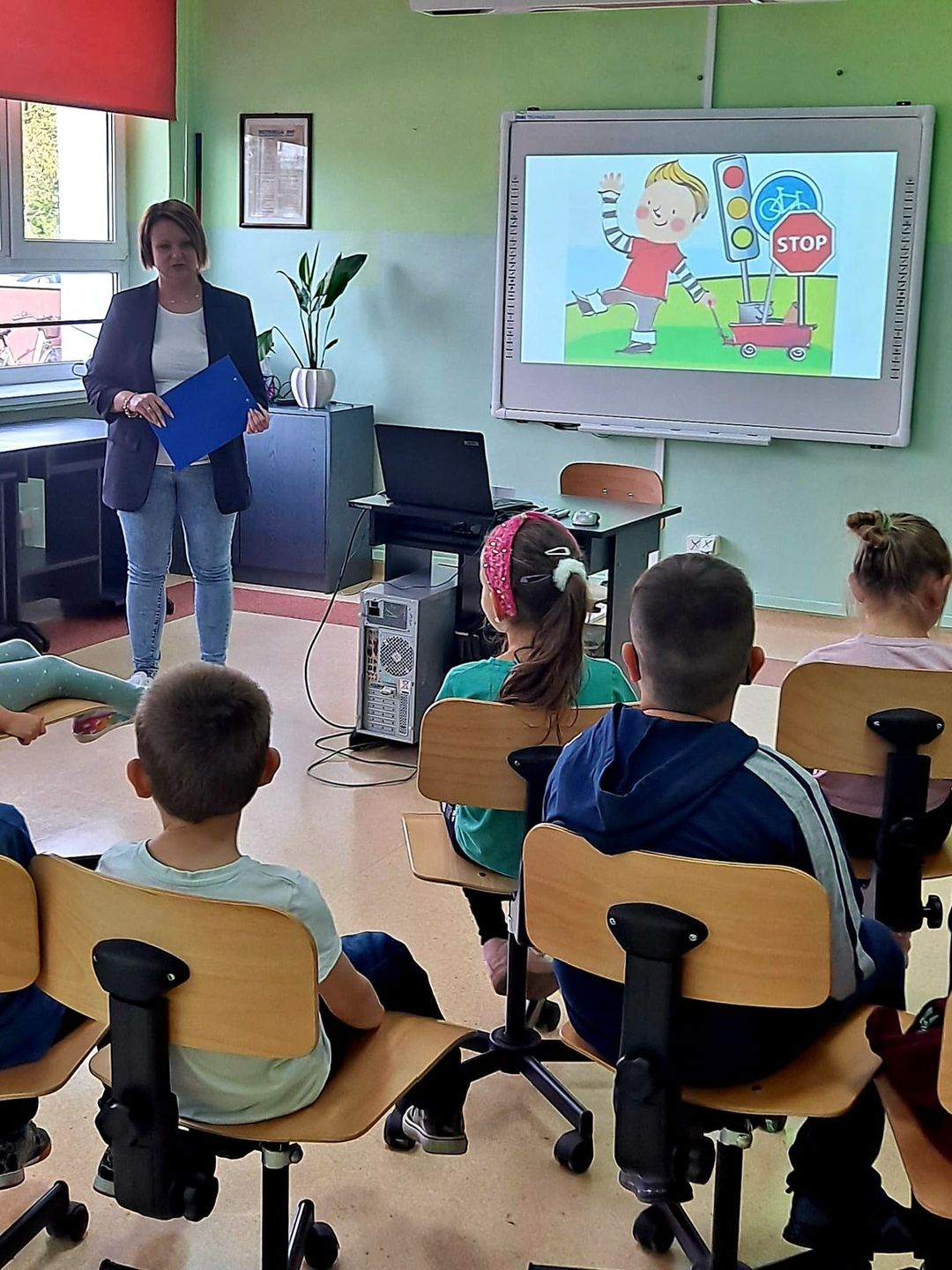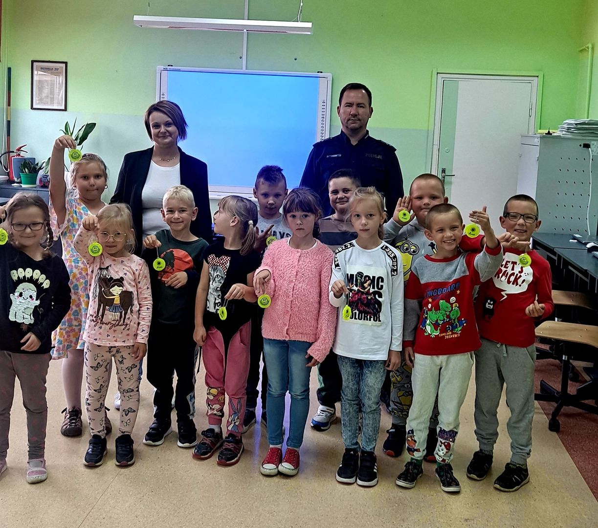 Dnia 12 września 2022 r. uczniowie klas pierwszych wzięli udział w zajęciach profilaktycznych na temat poprawy bezpieczeństwa w szkole  i poza nią. Zajęcia przeprowadzili p. Paulina Stawirej oraz dzielnicowy, p. Tomasz Pokorski z Komendy Policji    w Nowogardzie, którzy przypomnieli uczniom podstawowe zasady bezpiecznego poruszania się po drogach oraz numery alarmowe służb ratunkowych. Dzieci dowiedziały się jak zachować się w różnych sytuacjach np. w kontakcie z obcym psem lub z nieznajomym człowiekiem. Uczniom przekazano nie tylko teorię, ale także pokazano w praktyce jak bezpiecznie korzystać z przejścia dla pieszych. Dzieci otrzymały również  elementy odblaskowe poprawiające znacząco ich widoczność  a tym samym zwiększające bezpieczeństwo.