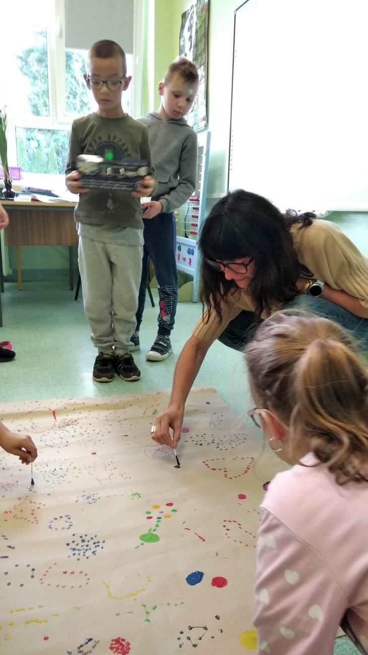 Dnia 15 września 2022 w świetlicy szkolnej obchodziliśmy „Międzynarodowy Dzień Kropki ”– święto kreatywności, odwagi i zabawy.” Tego dnia uczniowie prezentowali swoje talenty plastyczne. Dzieci rozwijały swoją wyobraźnię, kreatywność i pomysłowość poprzez wykonywanie różnych prac plastycznych. Powstały wyjątkowe i niepowtarzalne „kropkowe” dzieła sztuki. Uczniowie zadbali również o to żeby w całej naszej szkole panowało „kropkowe szaleństwo”, przyklejając każdej napotkanej osobie kropkę.