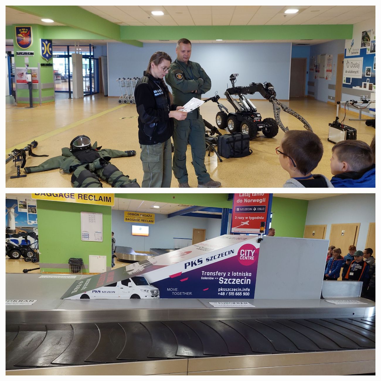 Z okazji Dnia Dziecka  uczniowie z klasy 3a pojechali zwiedzać Port Lotniczy Szczecin- Goleniów. Celem wycieczki było zapoznanie się z pracą ludzi na lotnisku i jego funkcjonowaniem. Program wycieczki był bardzo atrakcyjny. Po przyjeździe na miejsce zostaliśmy przywitani przez Pana Rafała  Krępę Kierownika Służby Ochrony  Lotniska, który oprowadził  nas po terenie lotniska. Najpierw musieliśmy przejść przez odprawę bagażową i celną. Przechodziliśmy przez  specjalne bramki. Tu mieliśmy okazję dowiedzieć się, czego nie należy wnosić na pokład samolotu i co zrobić, aby odprawa odbyła się szybko i sprawnie. Następnie udaliśmy się na taras widokowy.