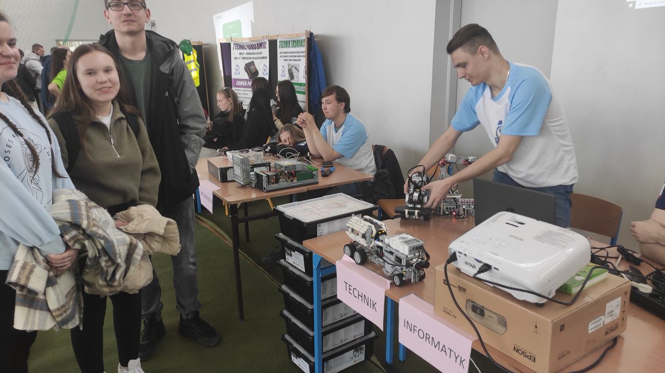 Celem wizyty było zapoznanie z kierunkami kształcenia oraz przedstawienie specyfiki pracowni specjalistycznych szkoły. Na sali gimnastycznej odbyła się prezentacja klas technicznych i szkoły branżowej. Uczniowie mogli osobiście spotkać się z uczniami i pracownikami szkoły, którzy chętnie dzielili się swoją wiedzą, odpowiadali na pytania i informowali o możliwościach kształcenia i rozwoju osobistego. W klasach przedstawiona została oferta edukacyjna szkoły i tutejszego internatu. Podczas trwania spotkania uczniowie mogli skosztować kruchych ciasteczek specjalnie upieczonych na tę okazję przez uczniów technikum żywienia. Bardzo dziękujemy za zaproszenie.